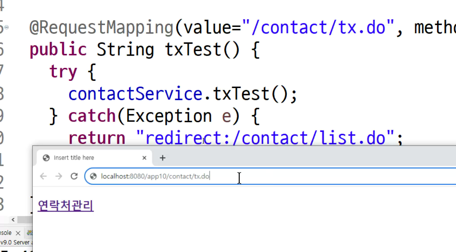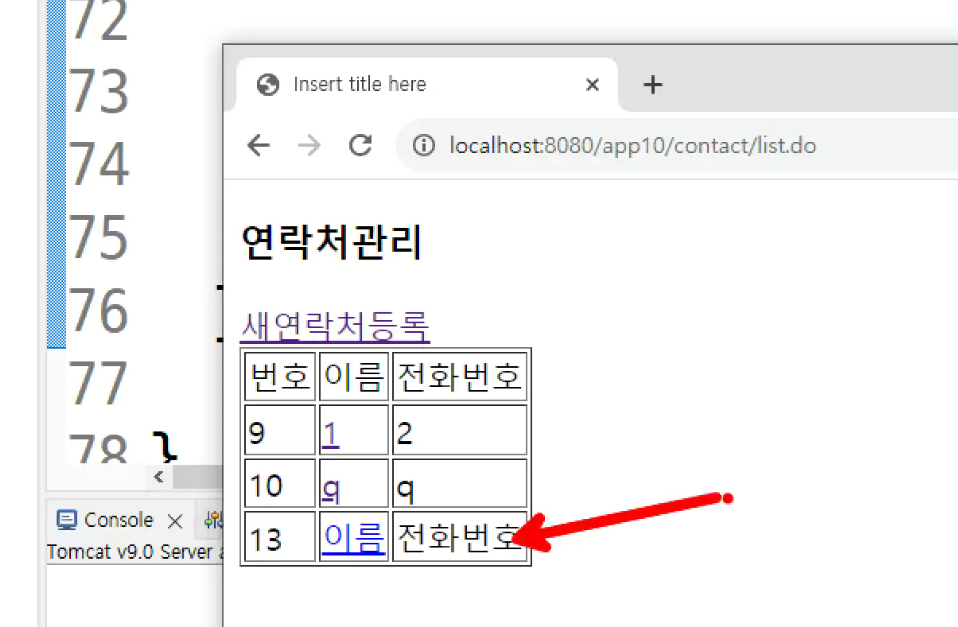 -> 목록보기로 가면 redirect되었고 exception 발생해서 (예외가발생해서 catch block에 코드가 동작한것)