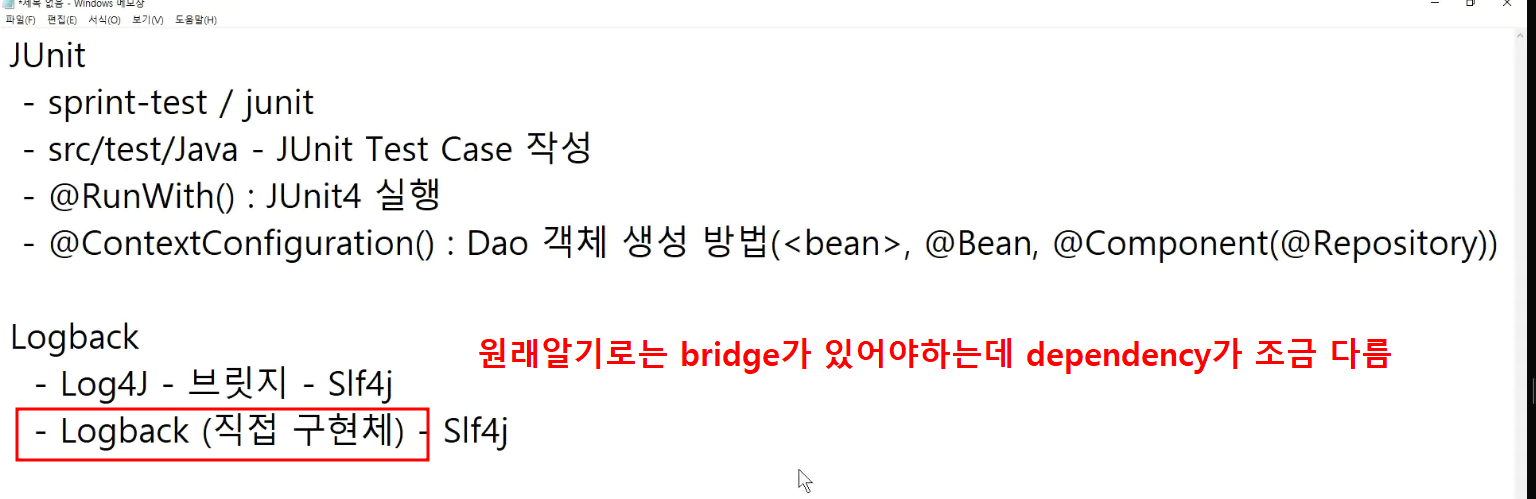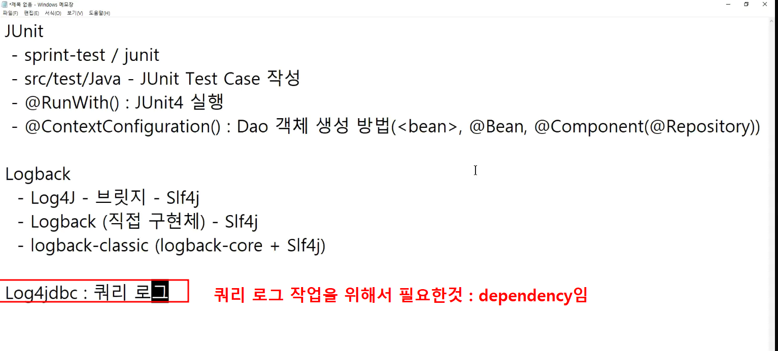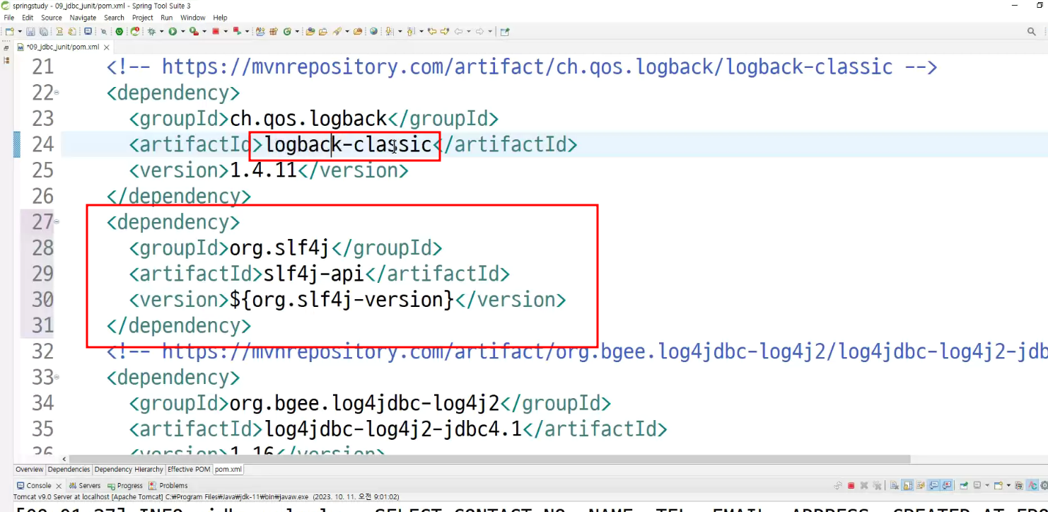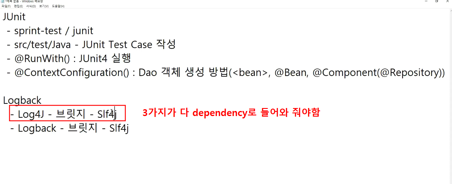 -> 어제 dependency 남아있는것 : logback하고 Slf4j가 classic에는 포함되어있음