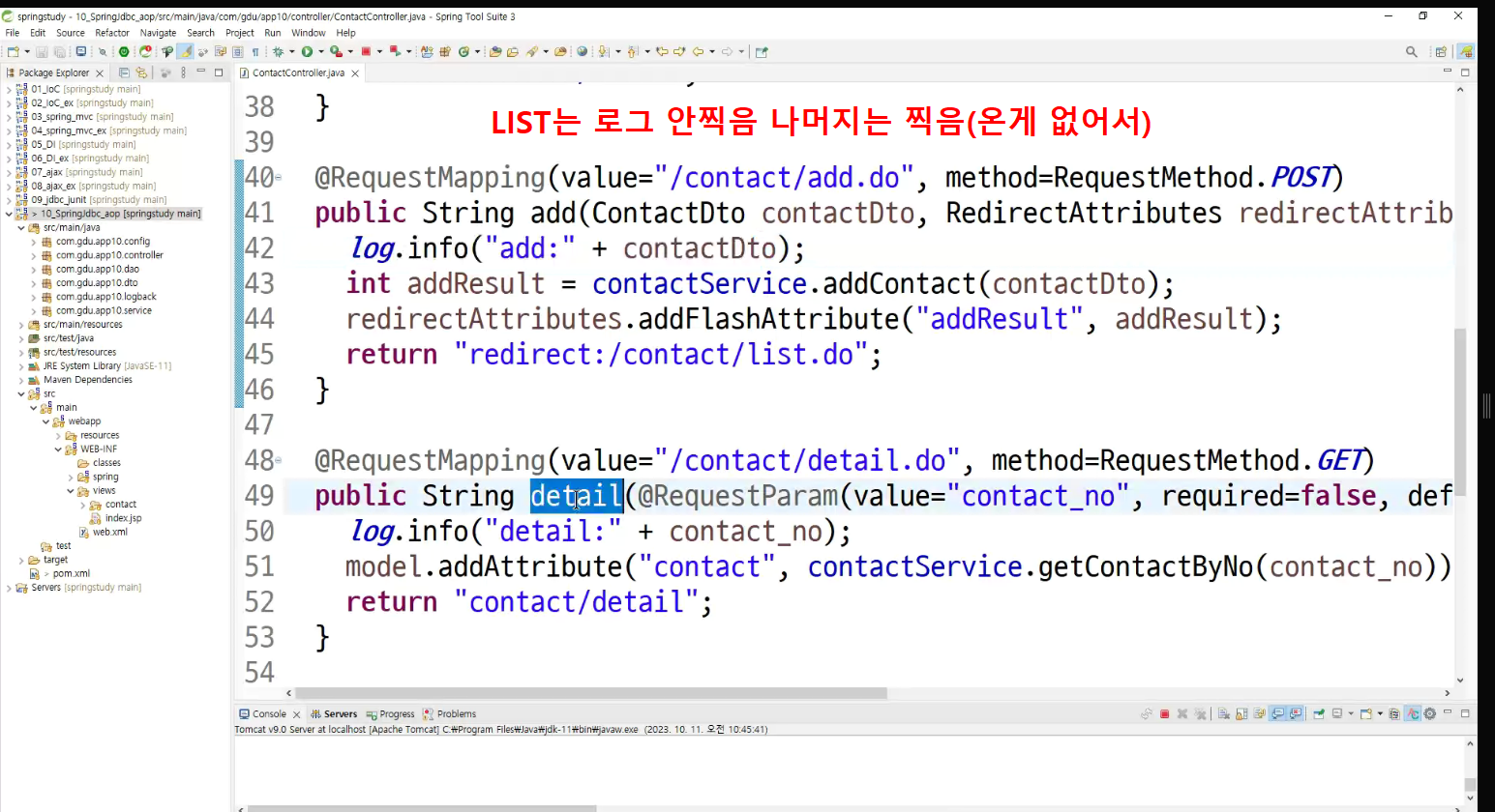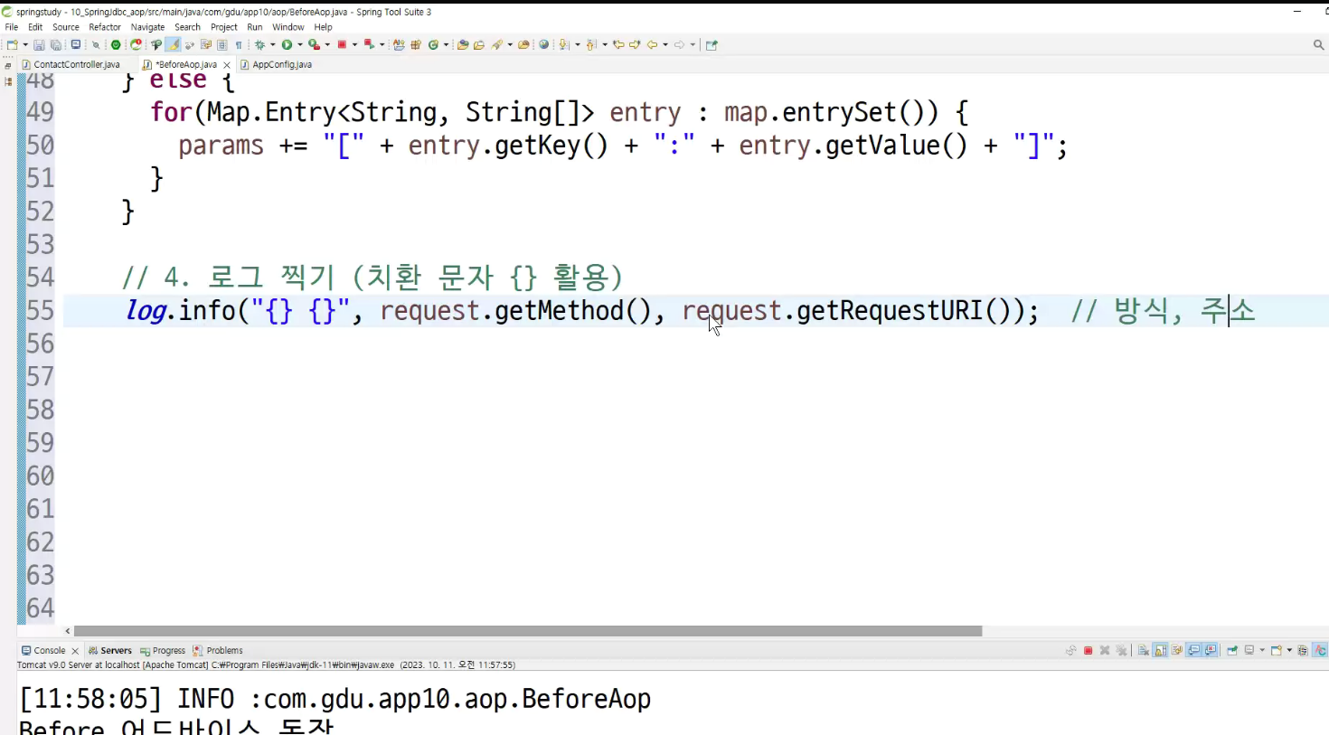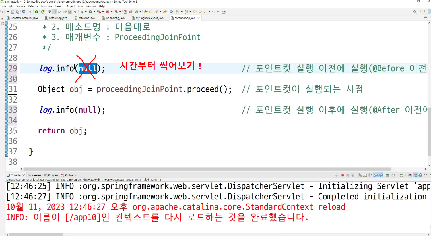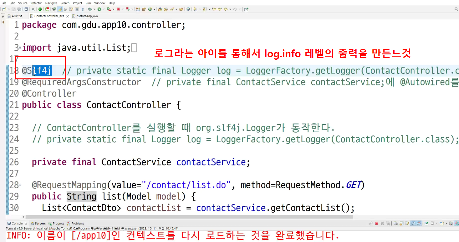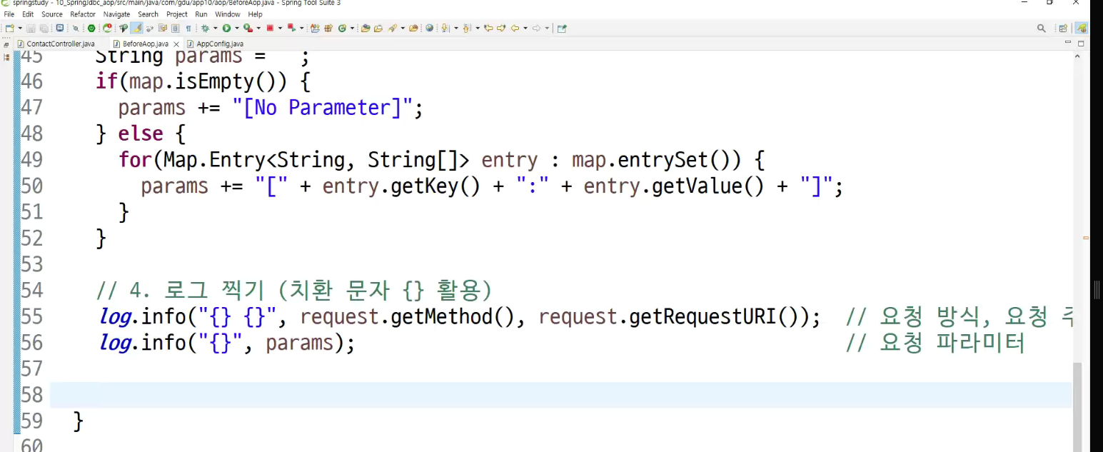 -> 메소드마다 로그 찍는거 넣어둠