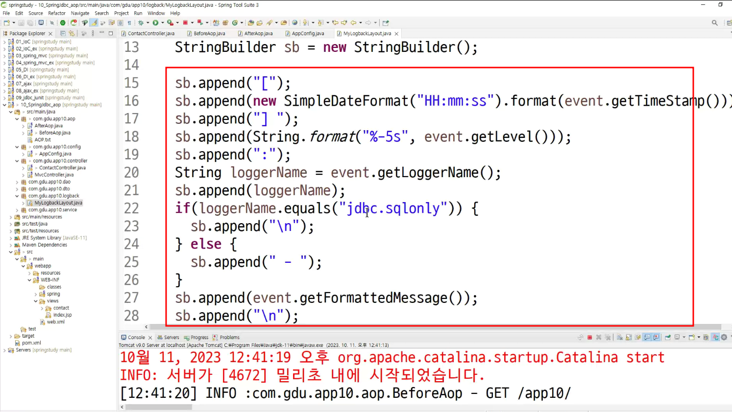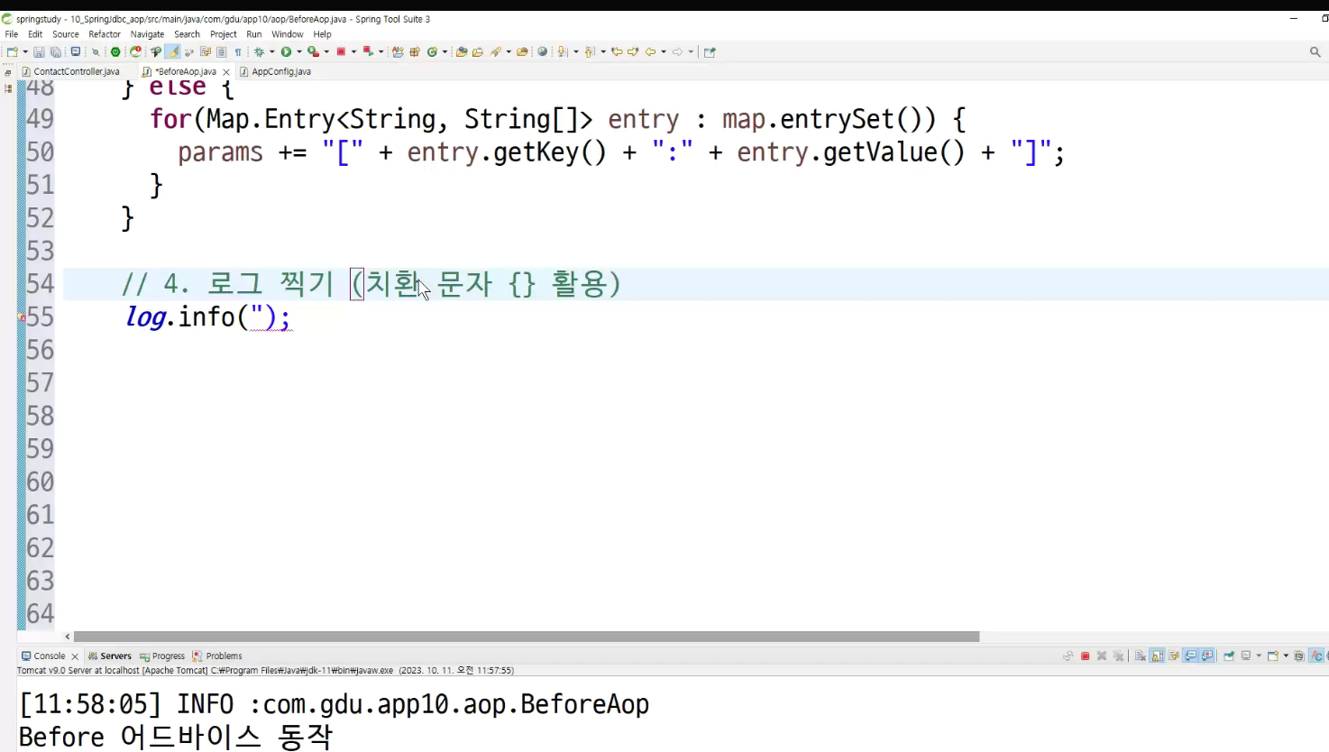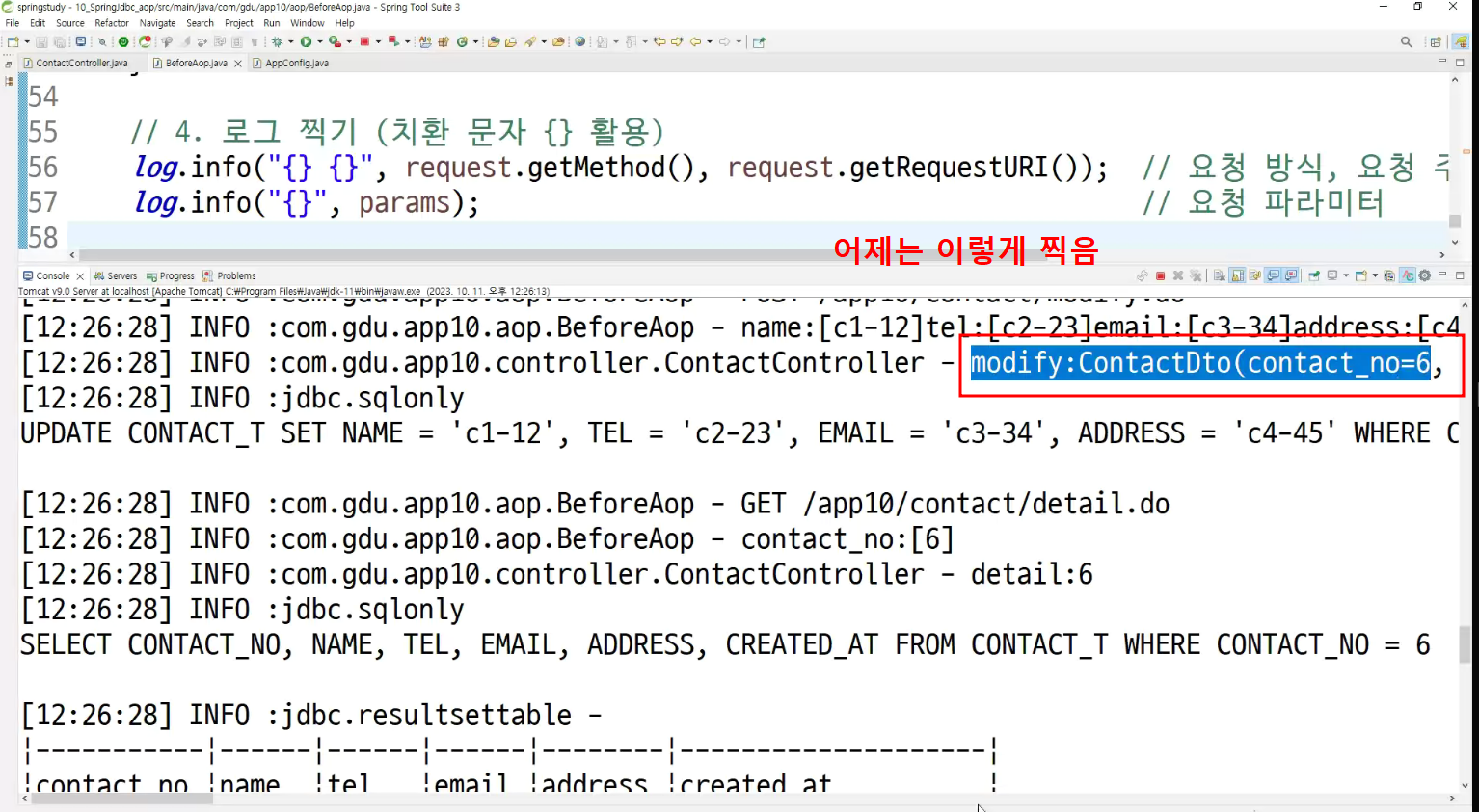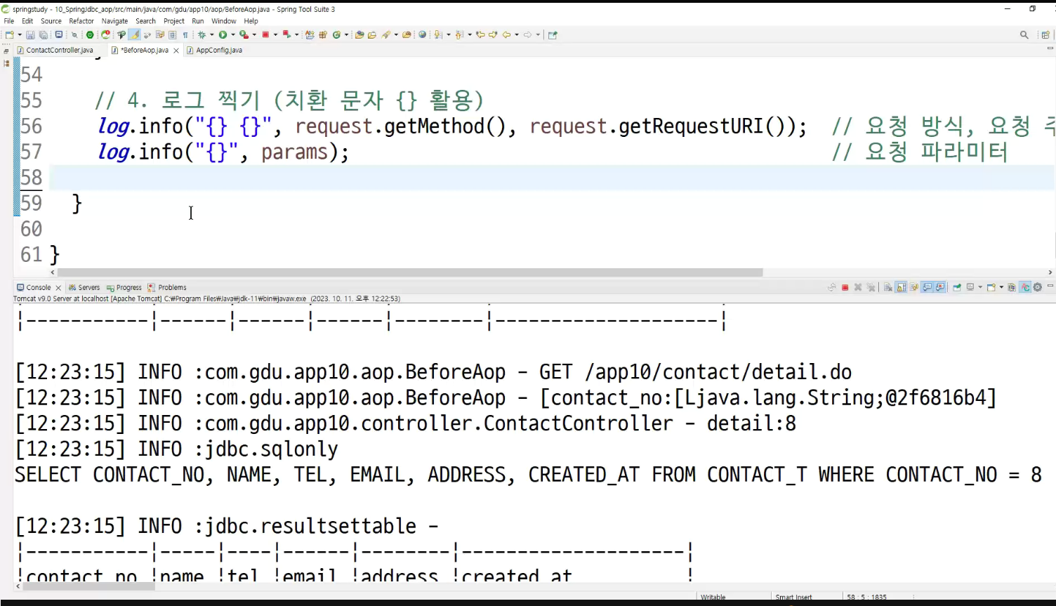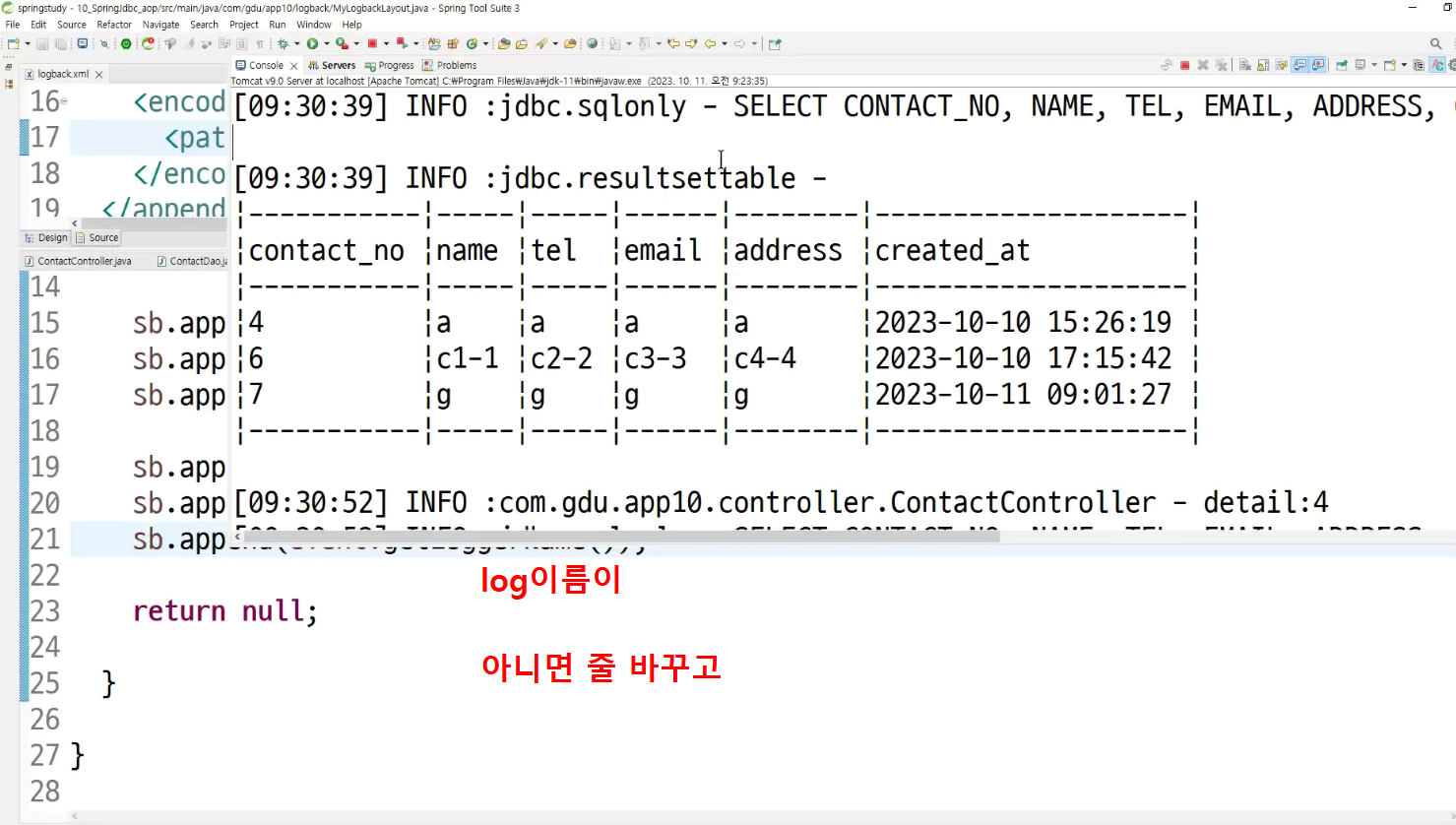 -> 메소드마다 로그 찍는거 넣어둠