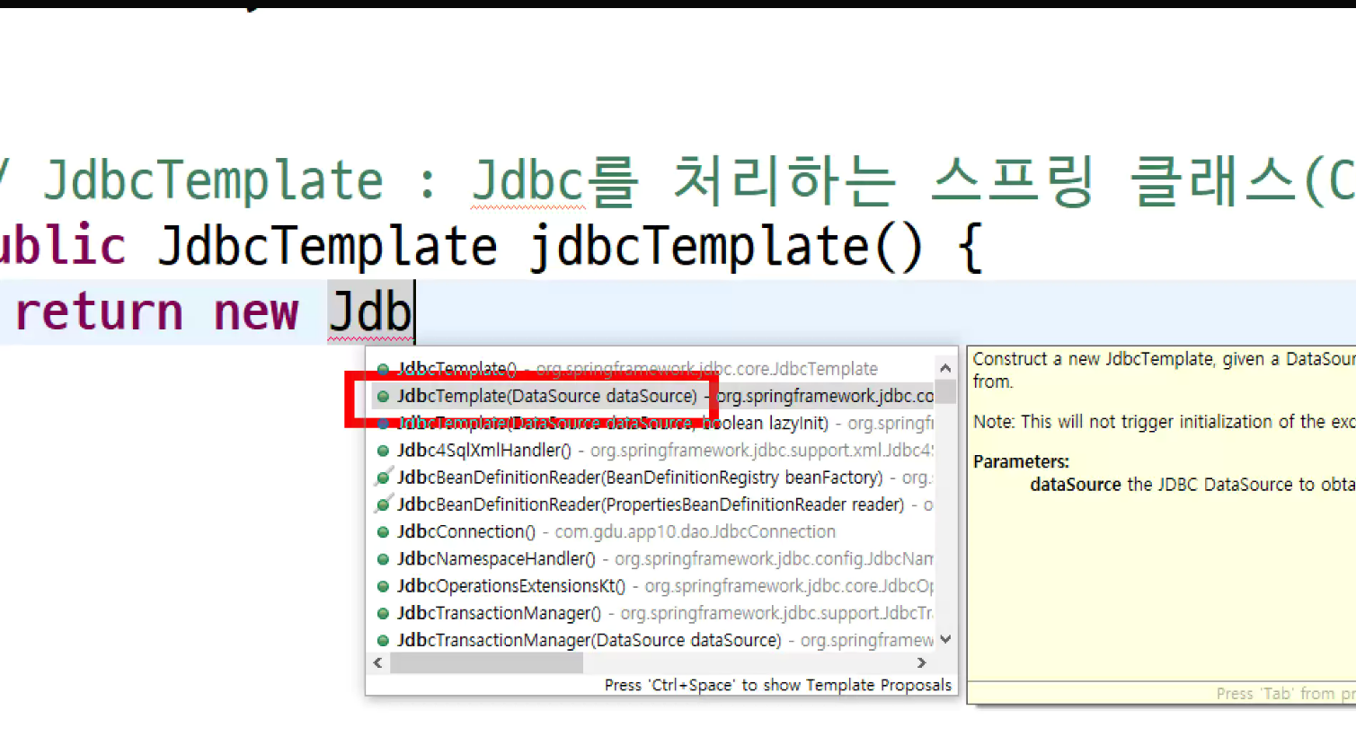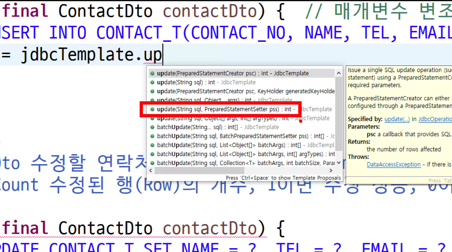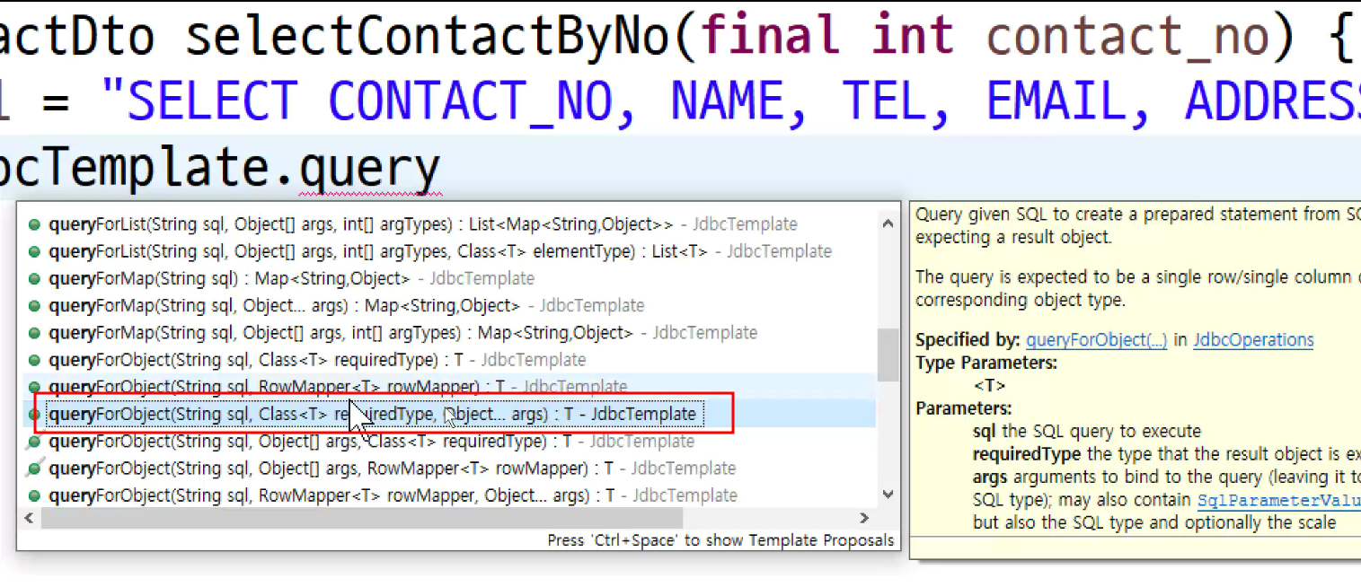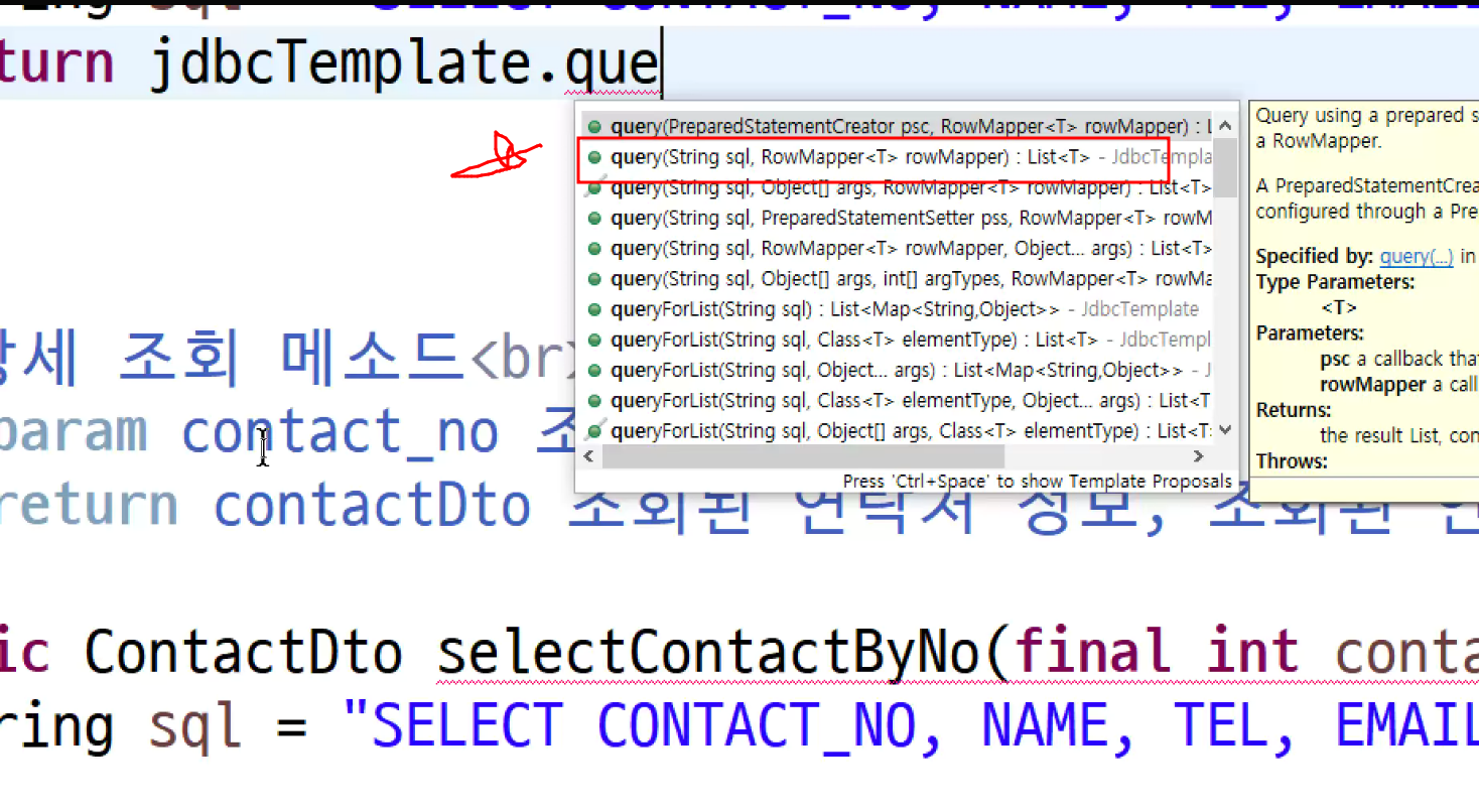 -> jdbc template제작할때 :