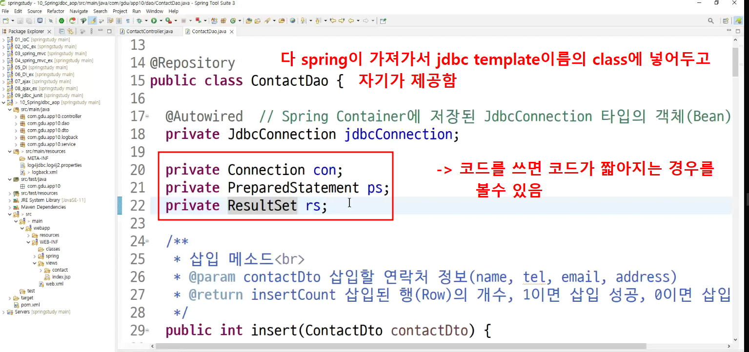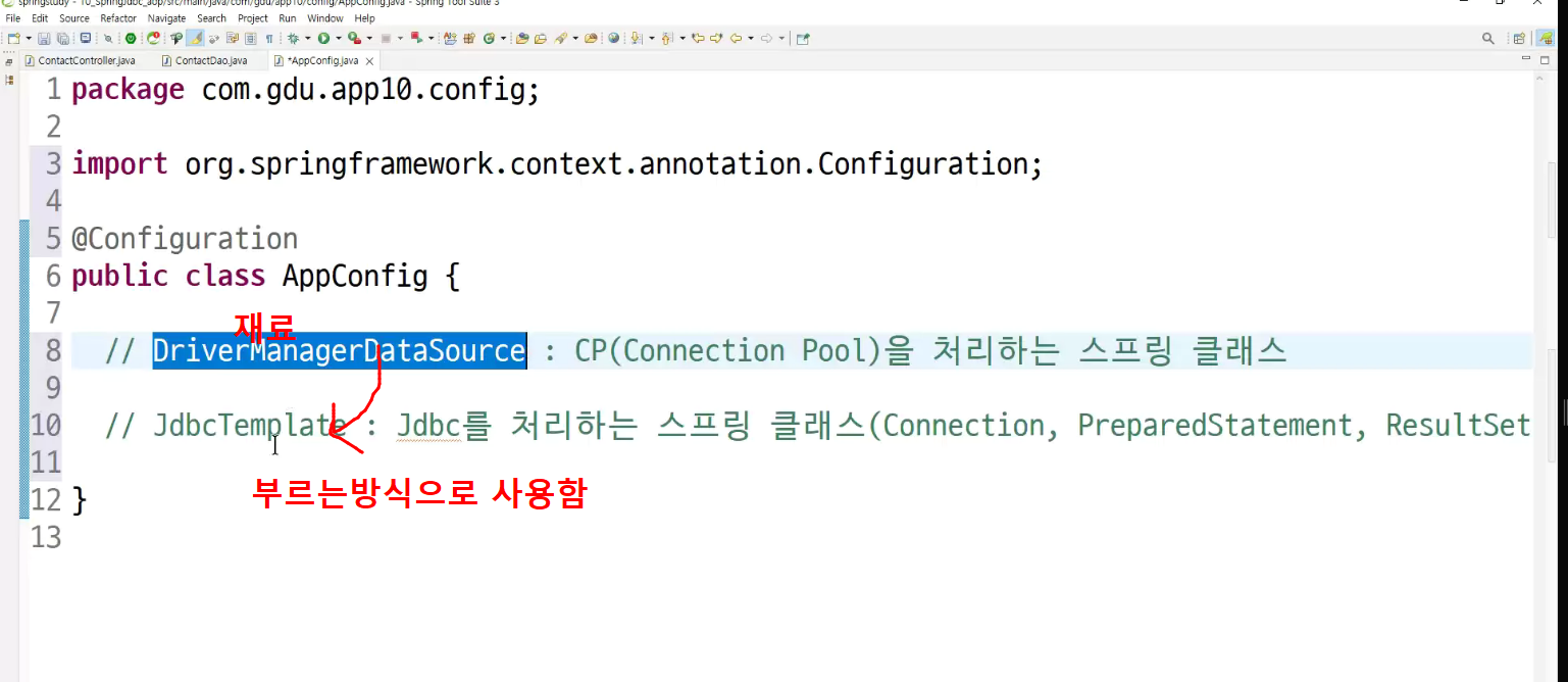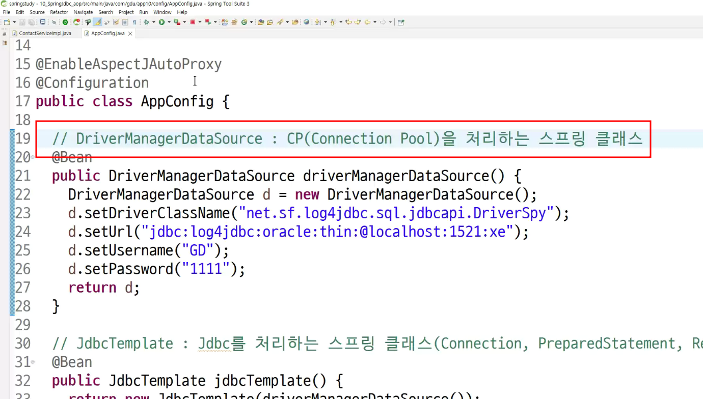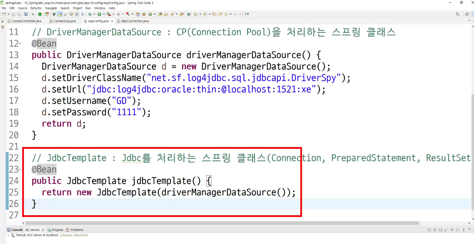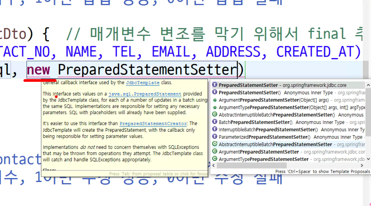 -> jdbc template제작할때 :