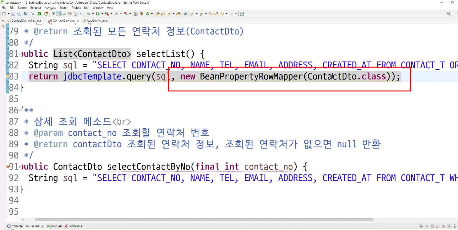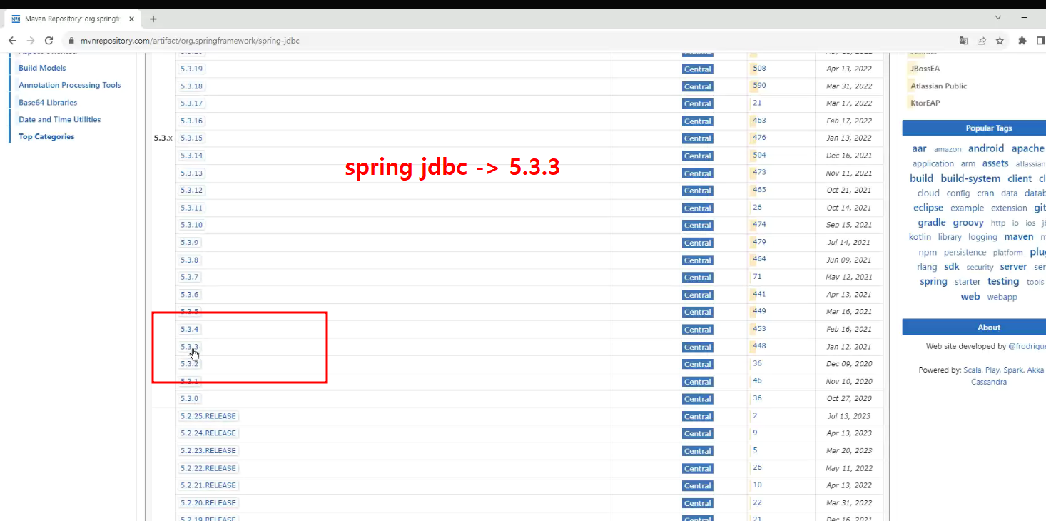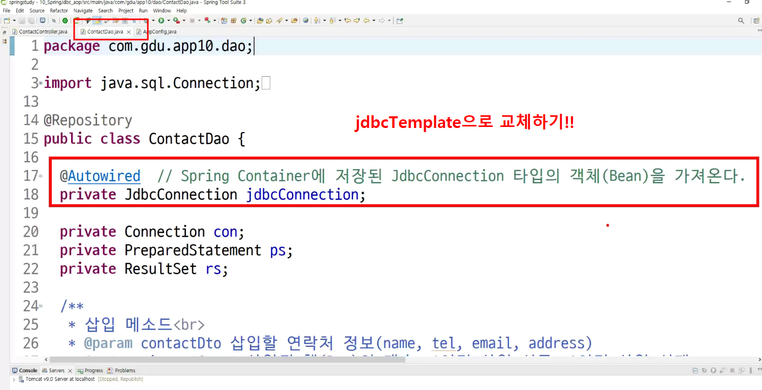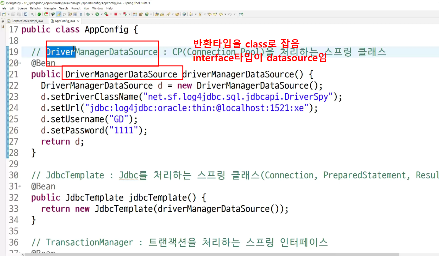 -> jdbc template제작할때 :