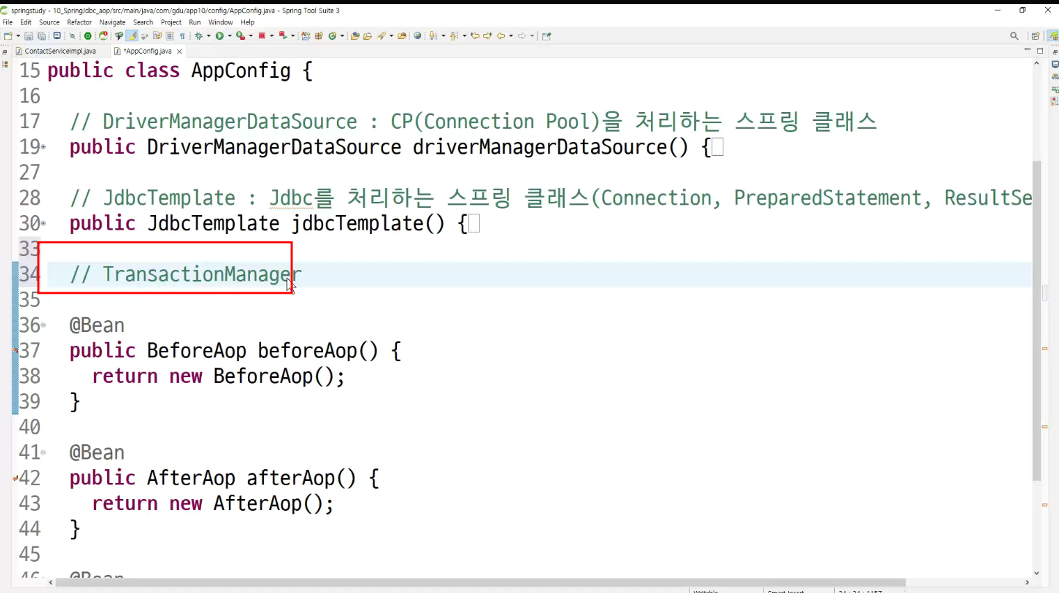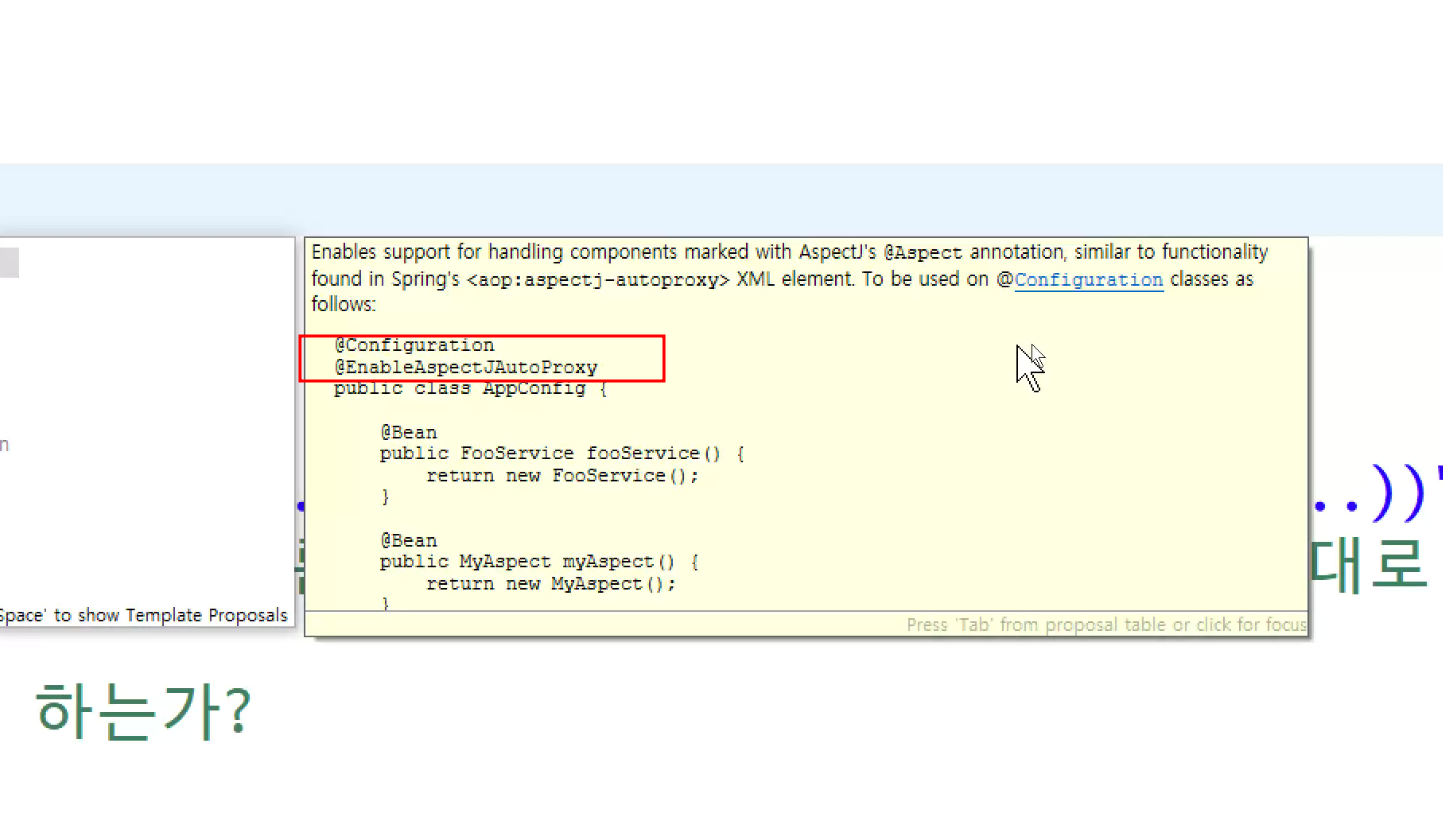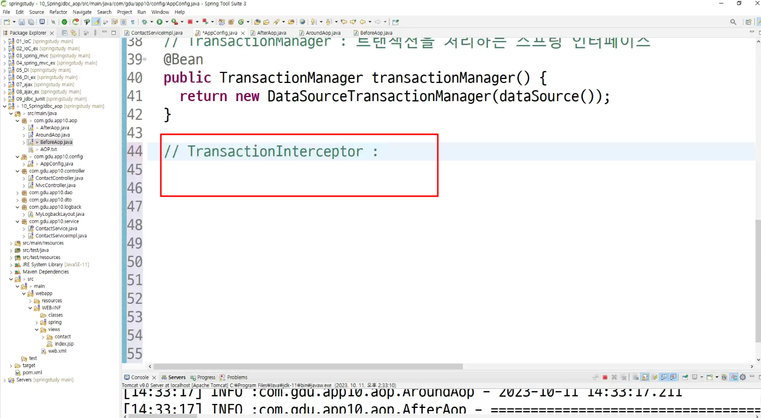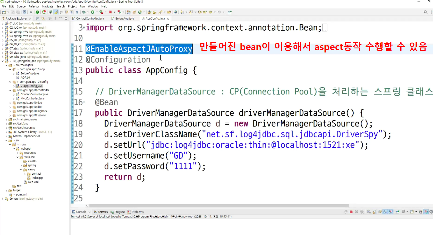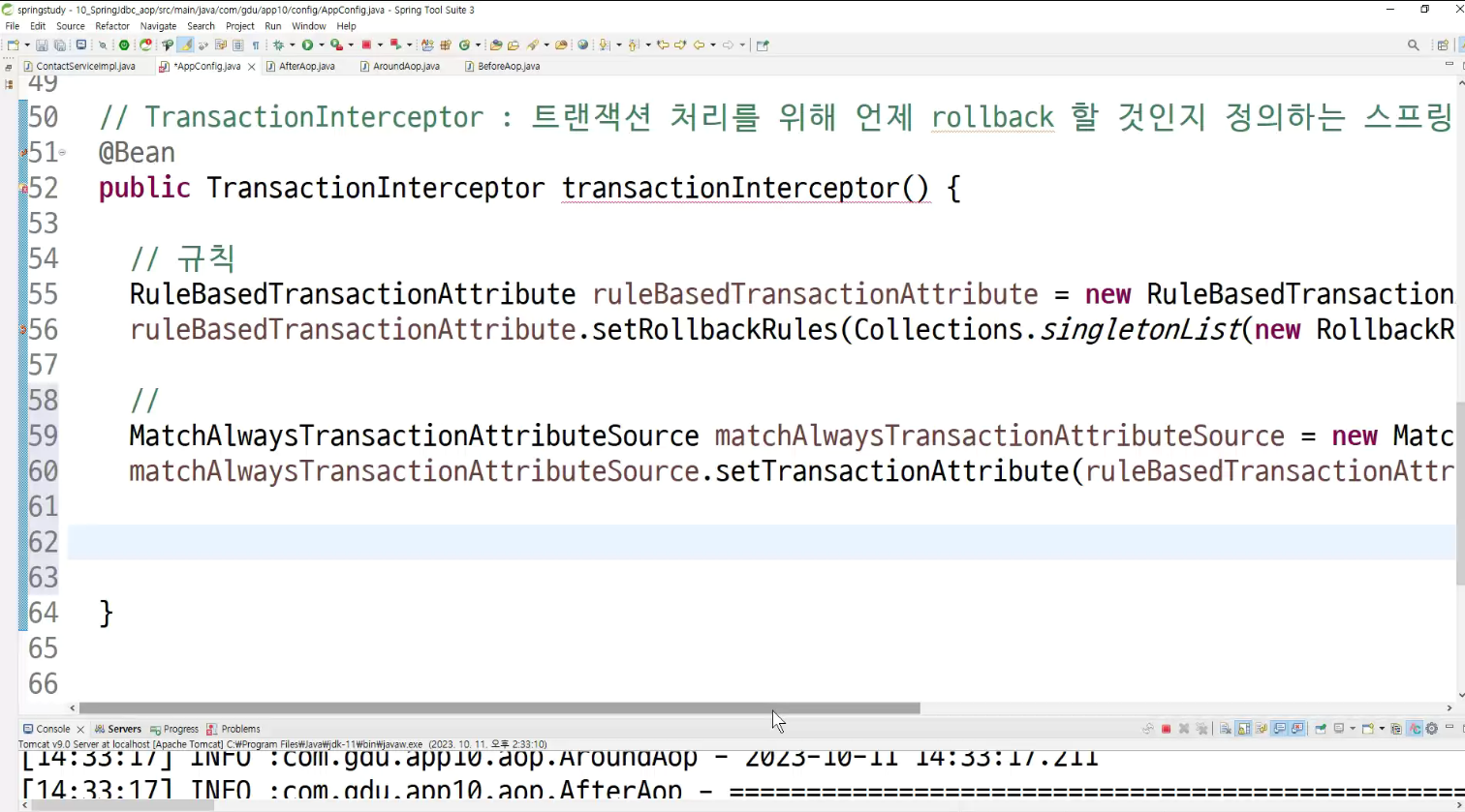 ->왜 configuration에 두는가? aop도 bean으로 만들어두고 처리하는것이라서