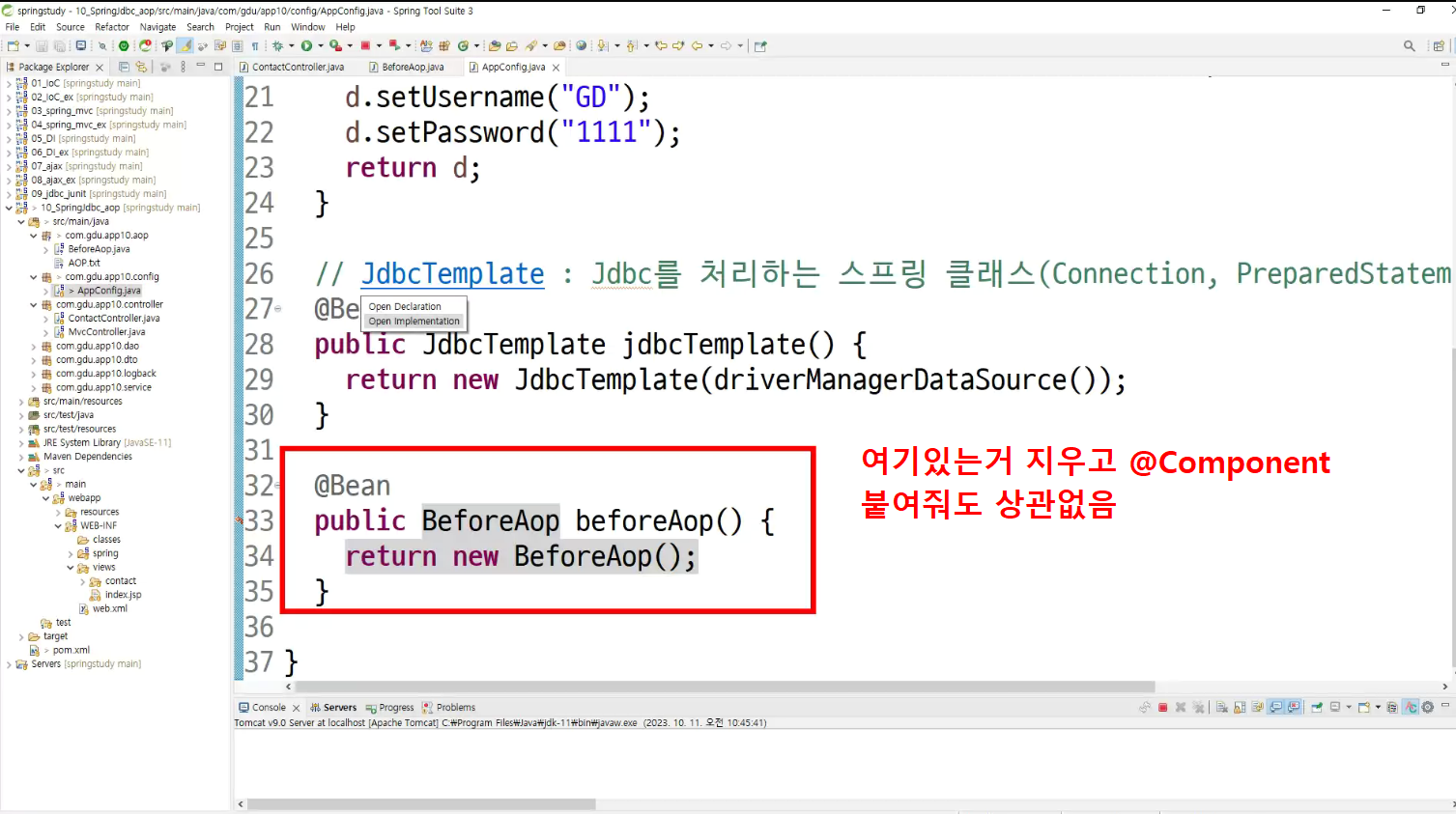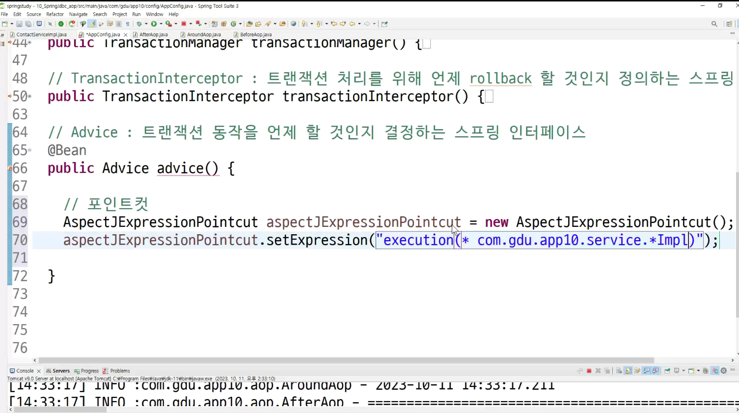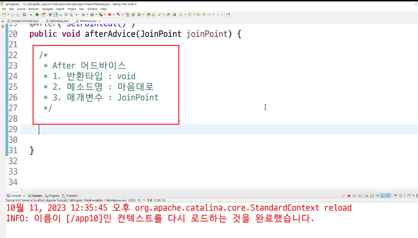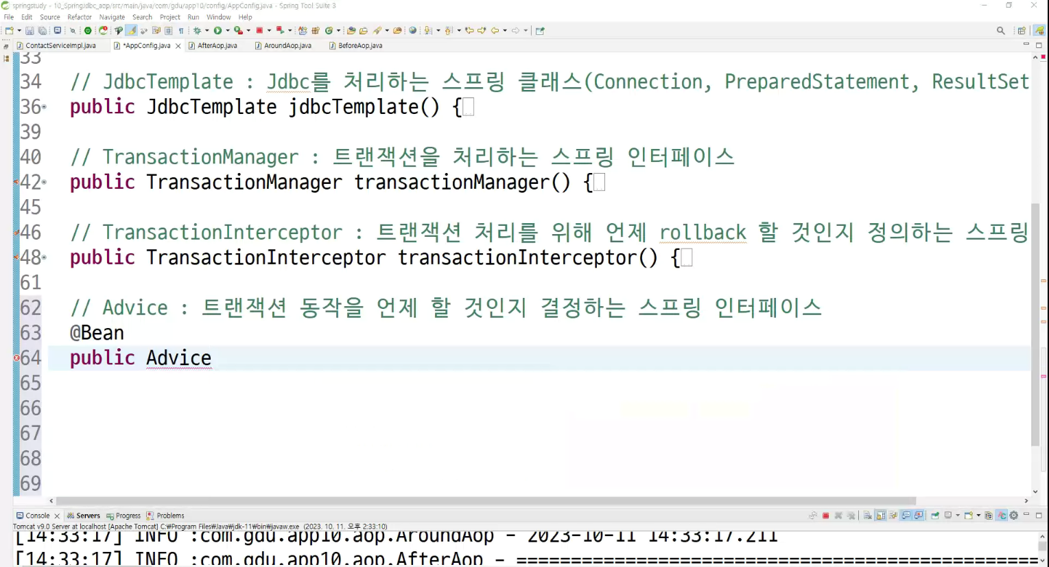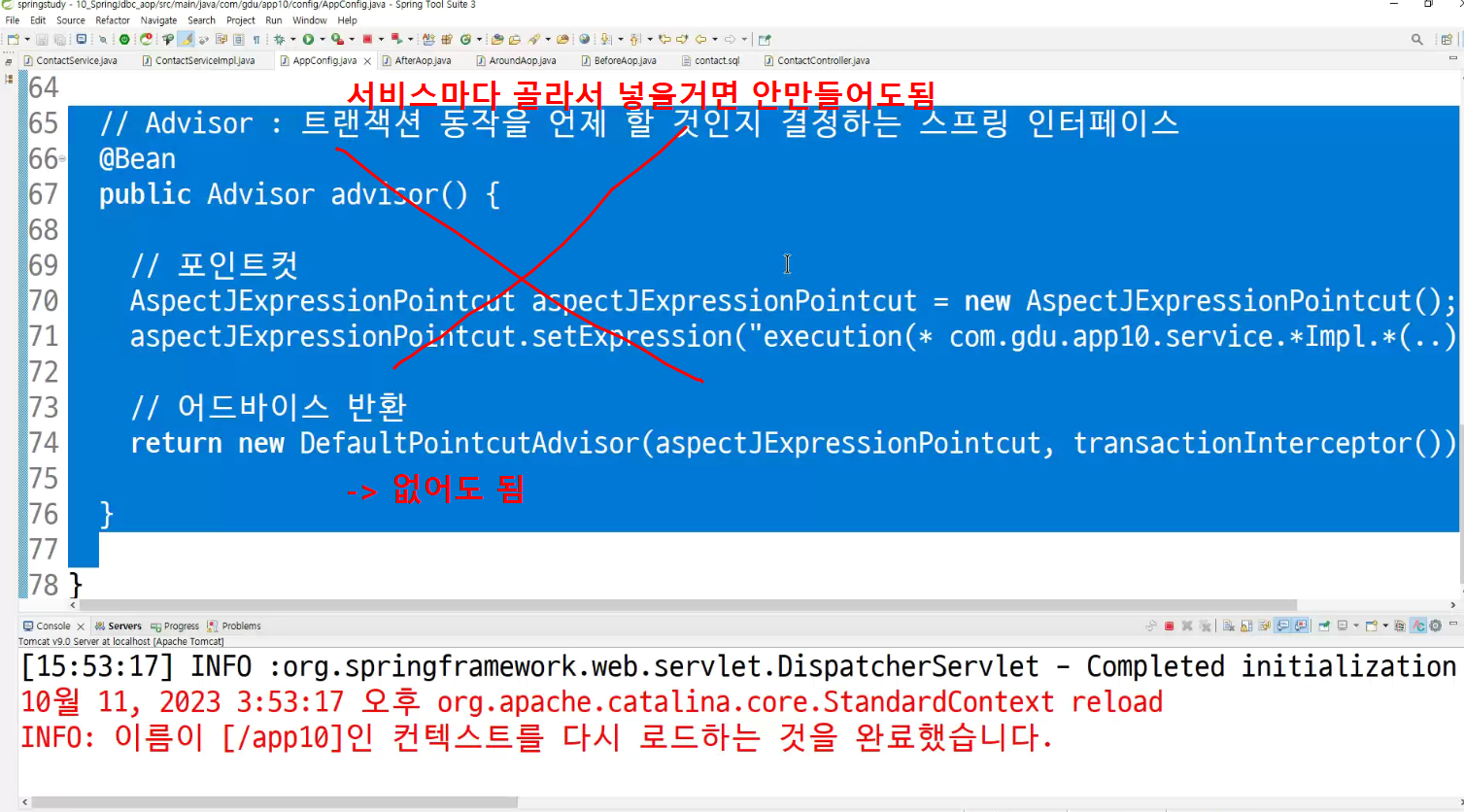 ->왜 configuration에 두는가? aop도 bean으로 만들어두고 처리하는것이라서