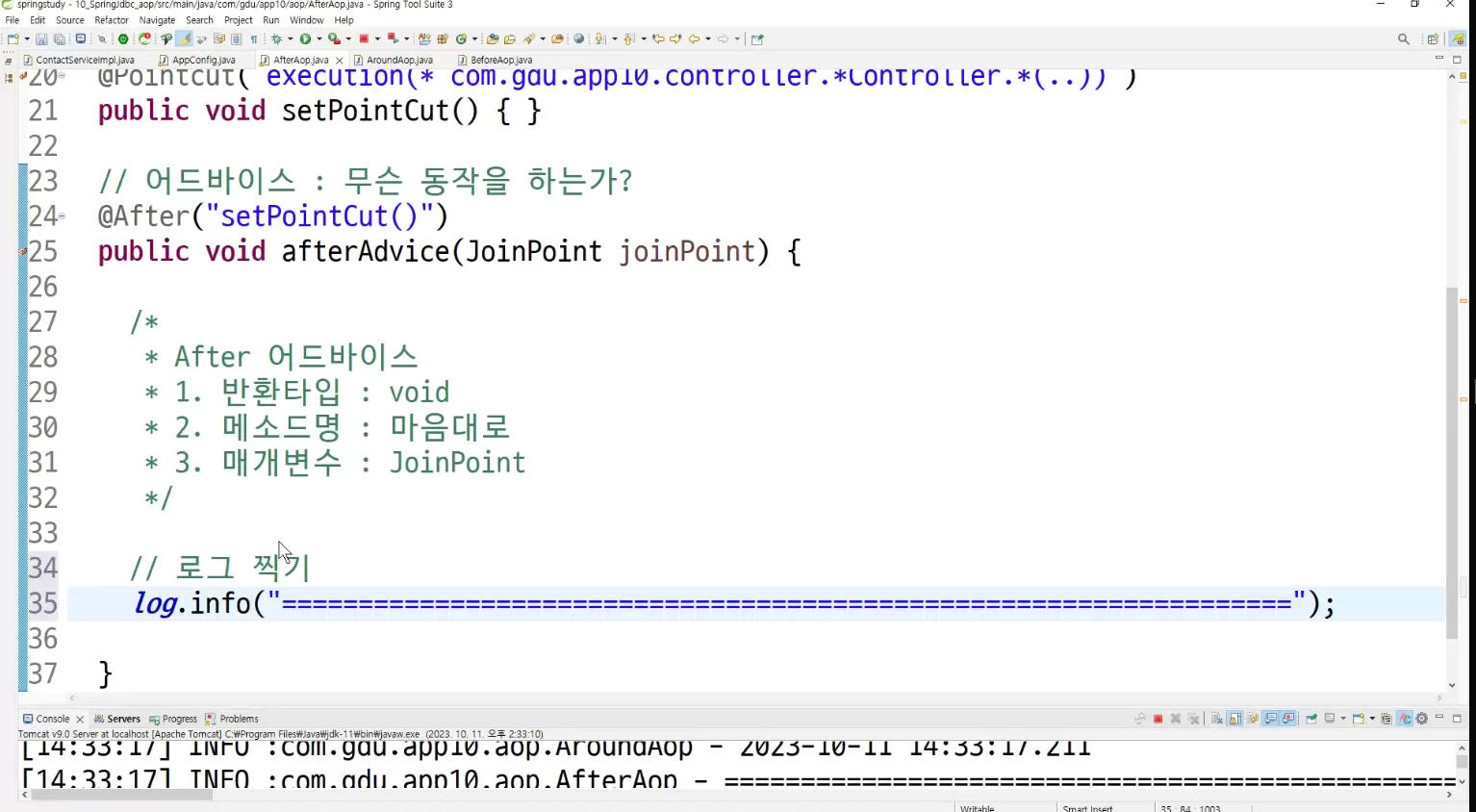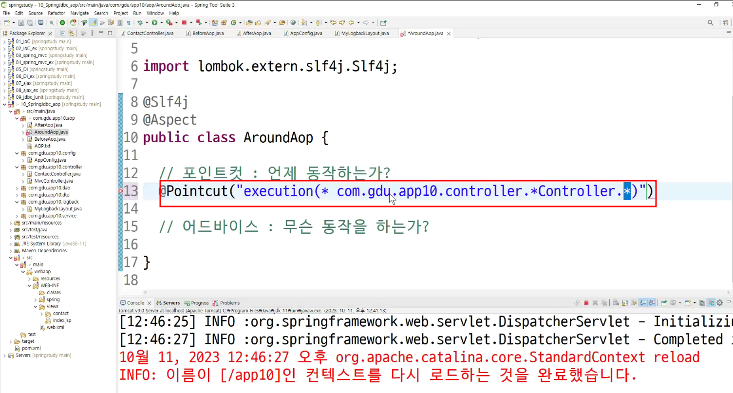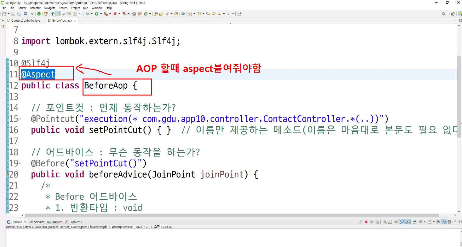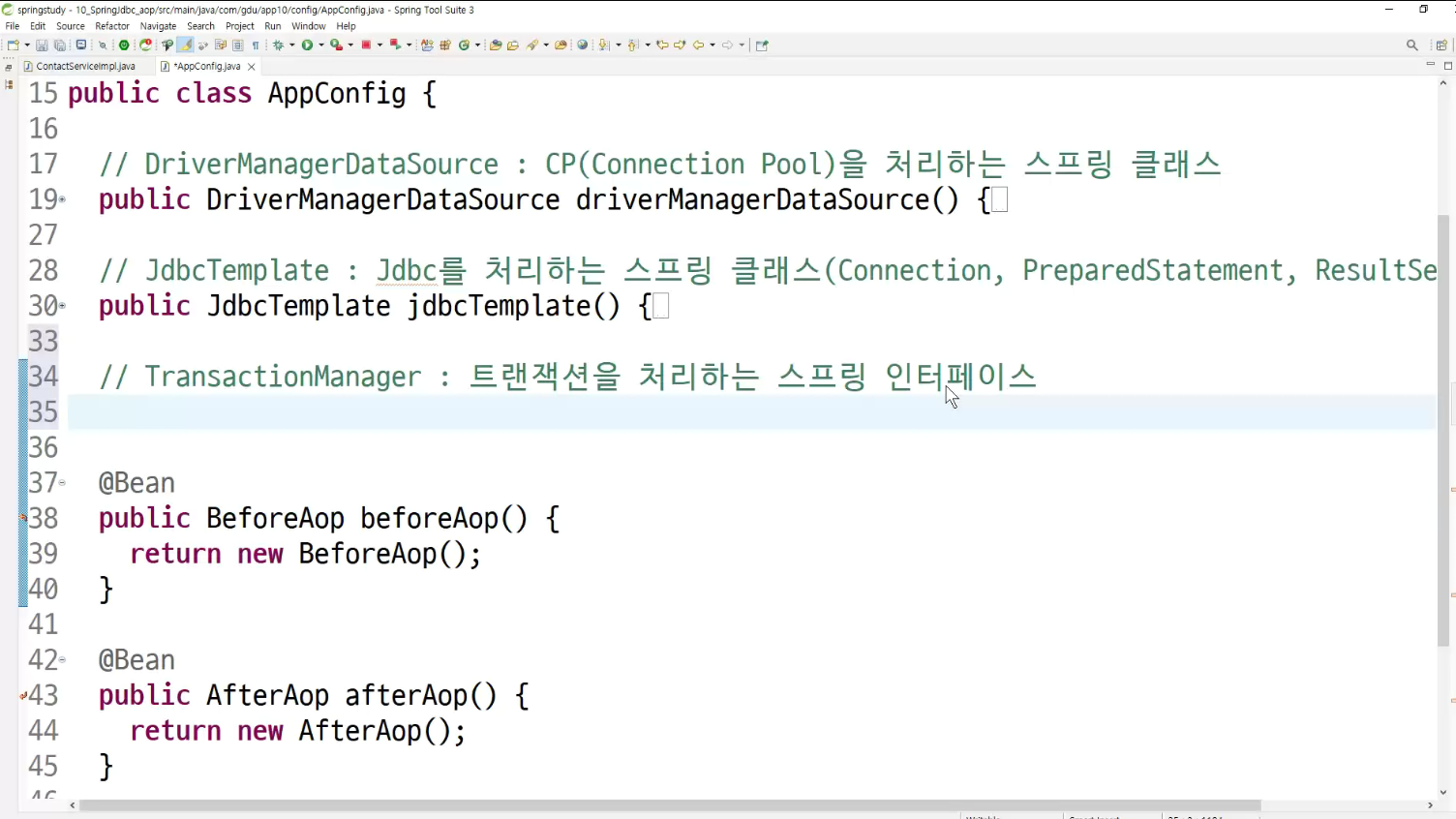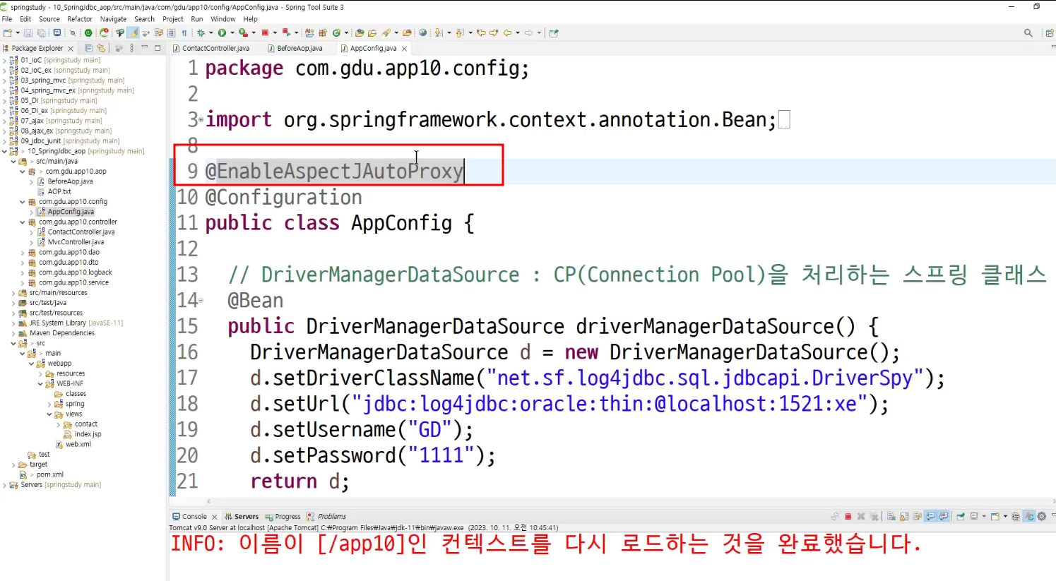 ->왜 configuration에 두는가? aop도 bean으로 만들어두고 처리하는것이라서