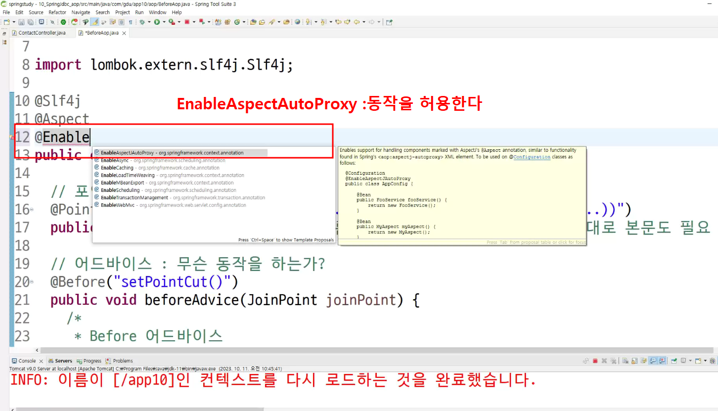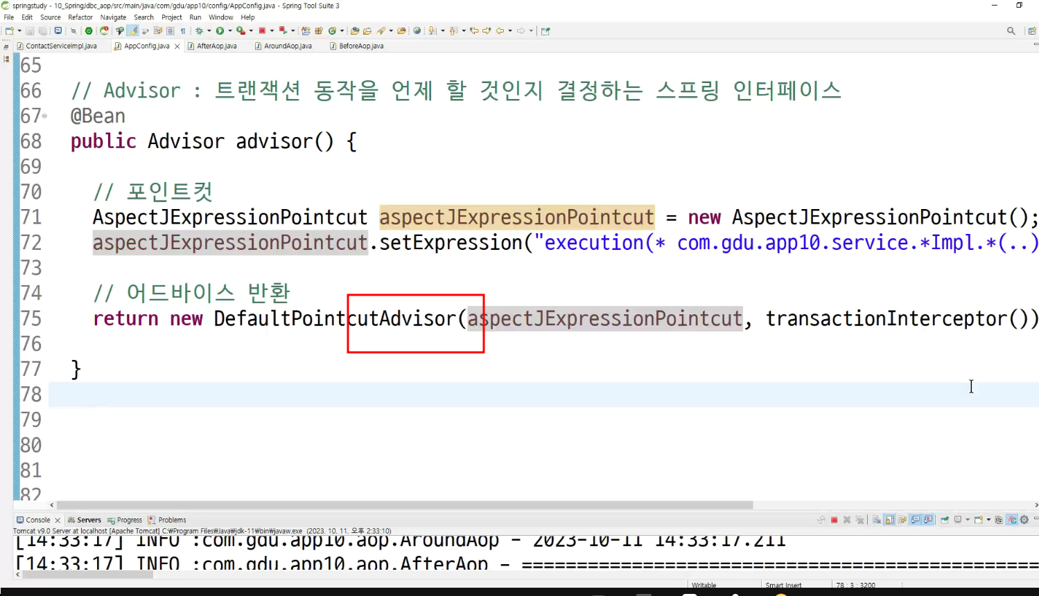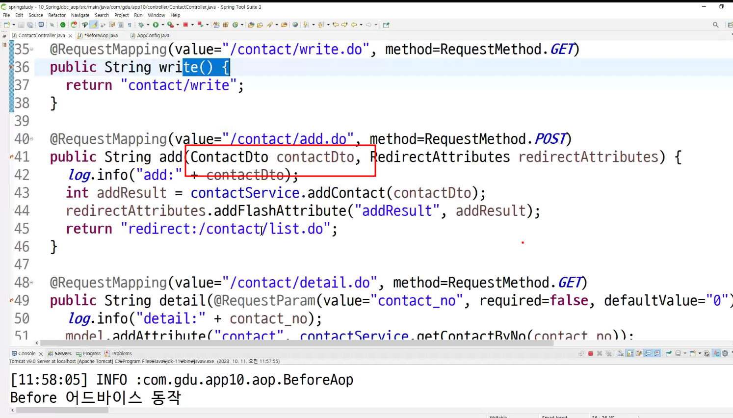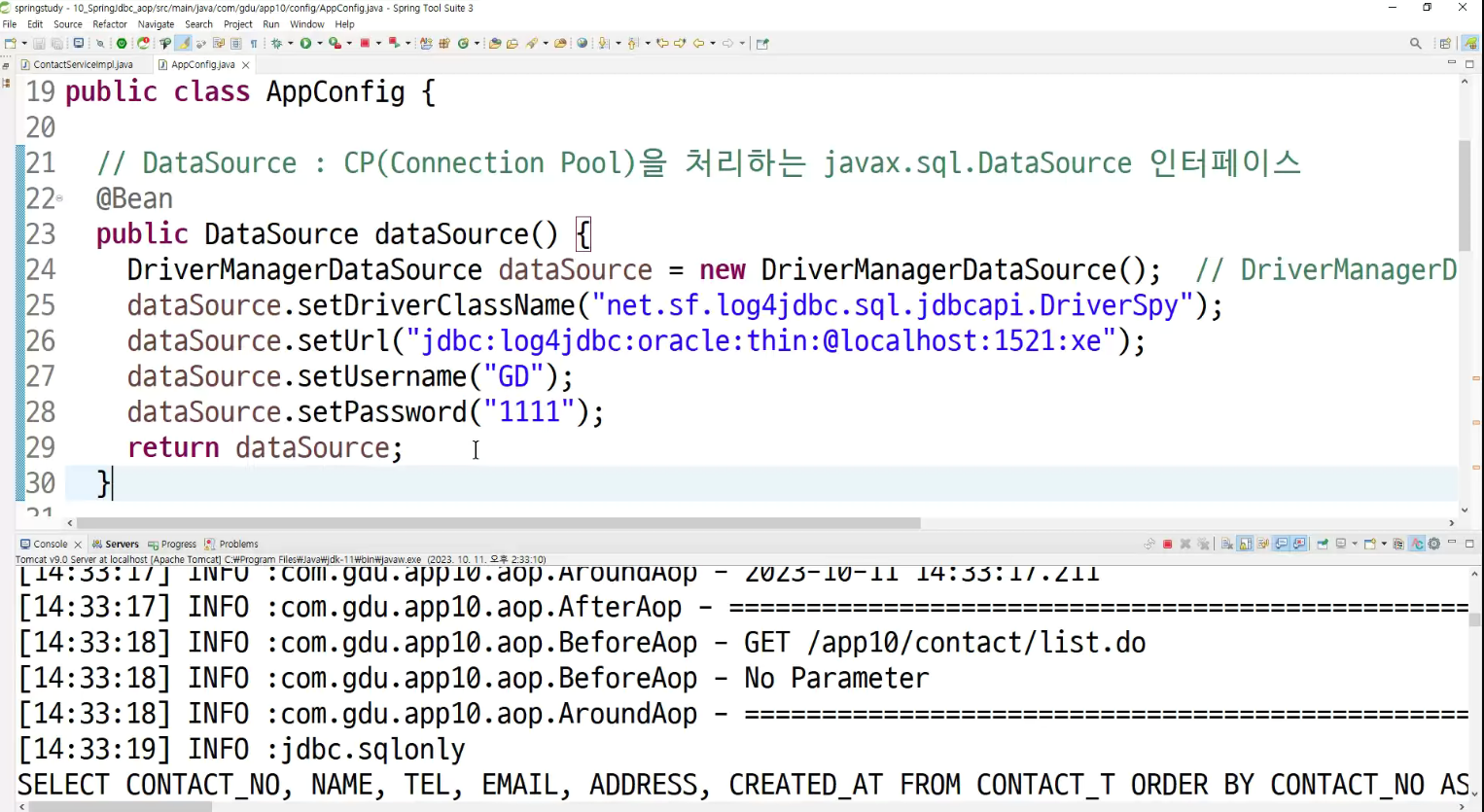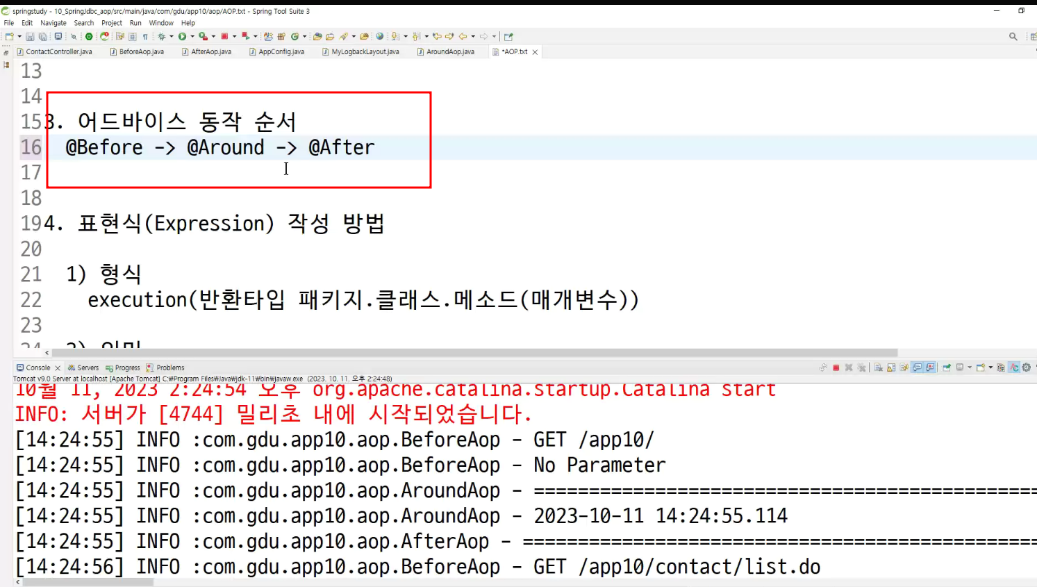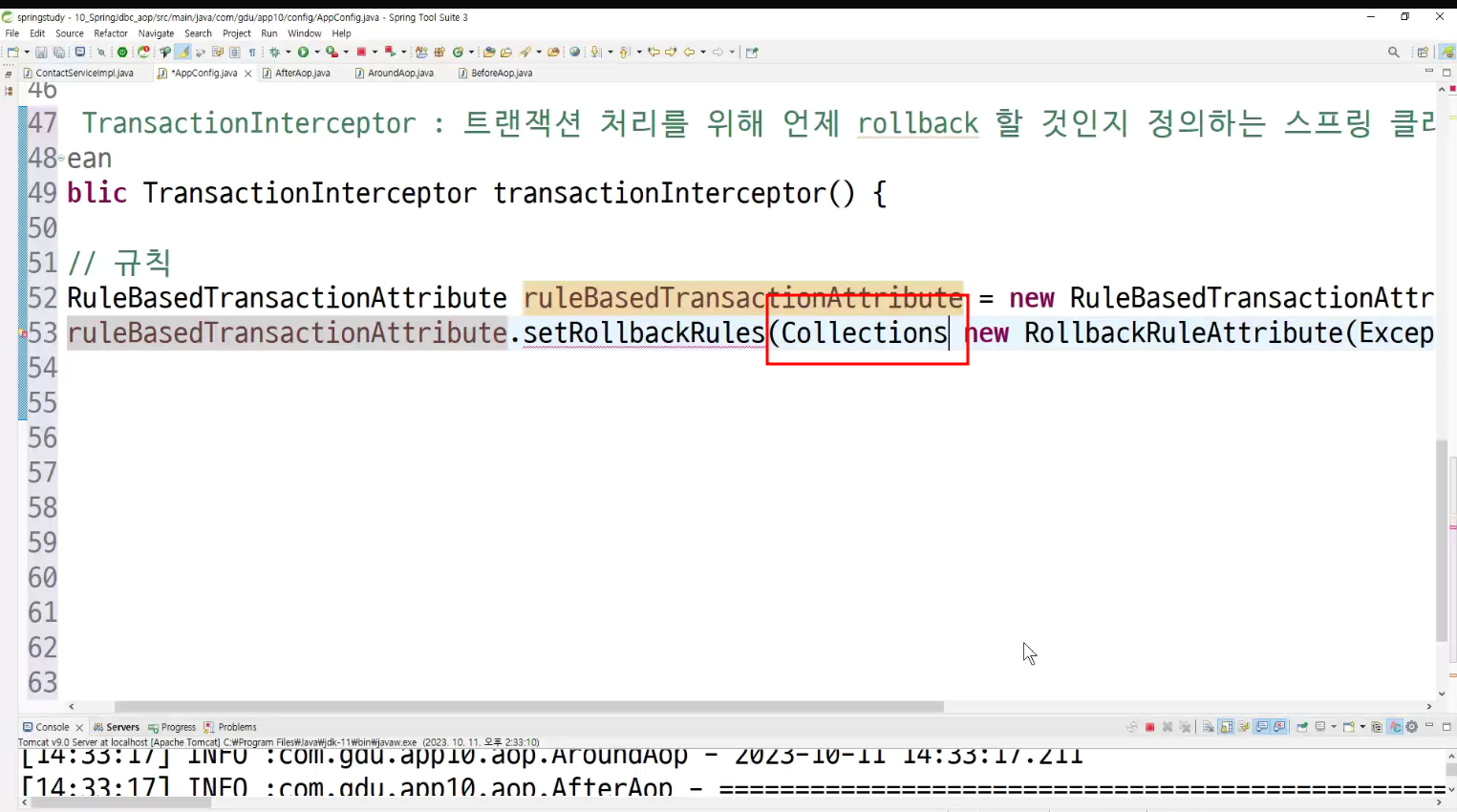 ->왜 configuration에 두는가? aop도 bean으로 만들어두고 처리하는것이라서