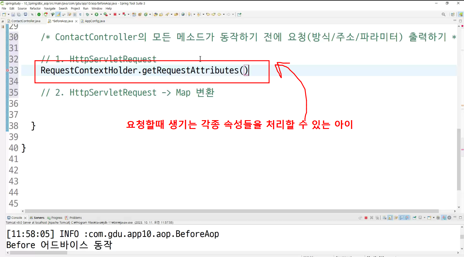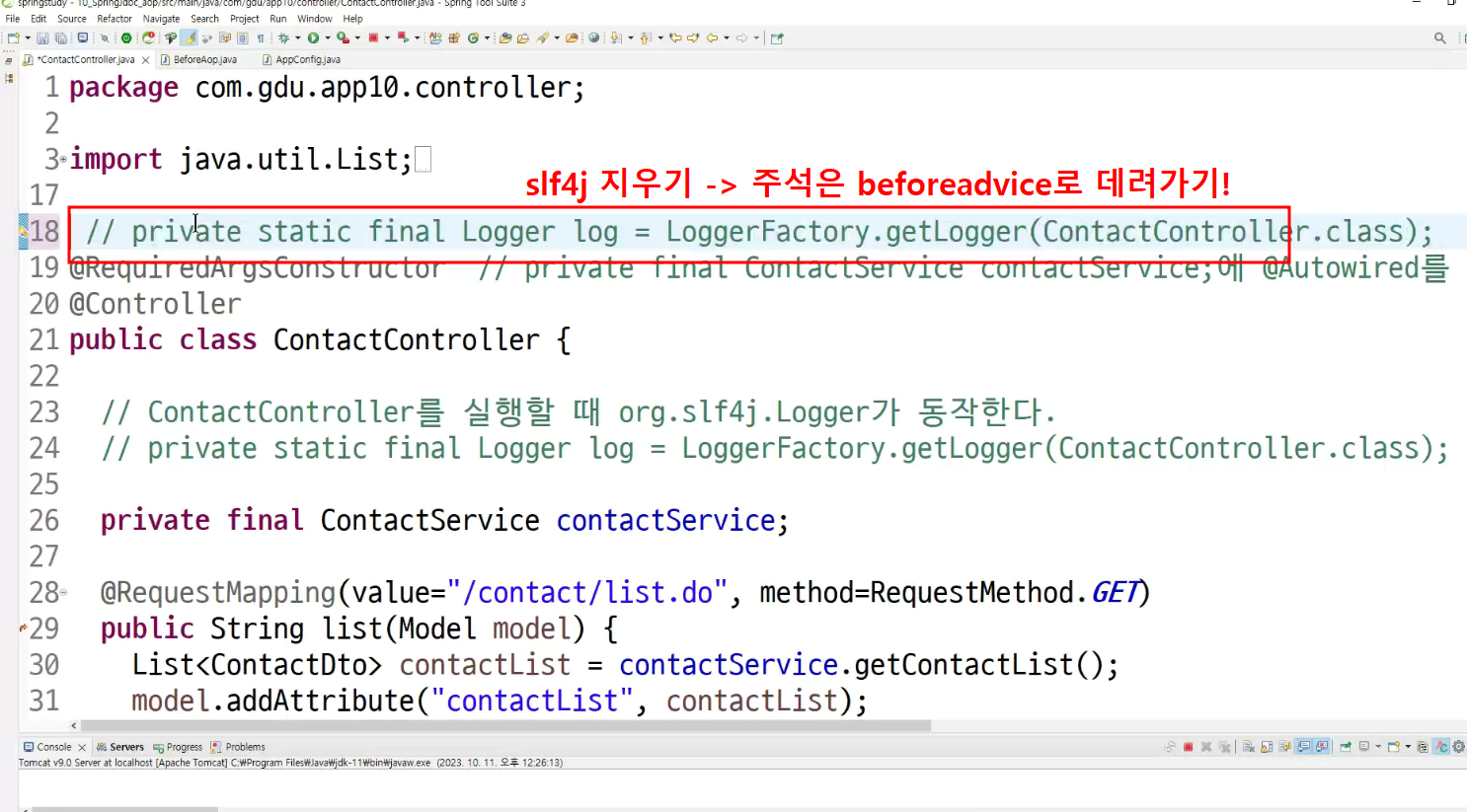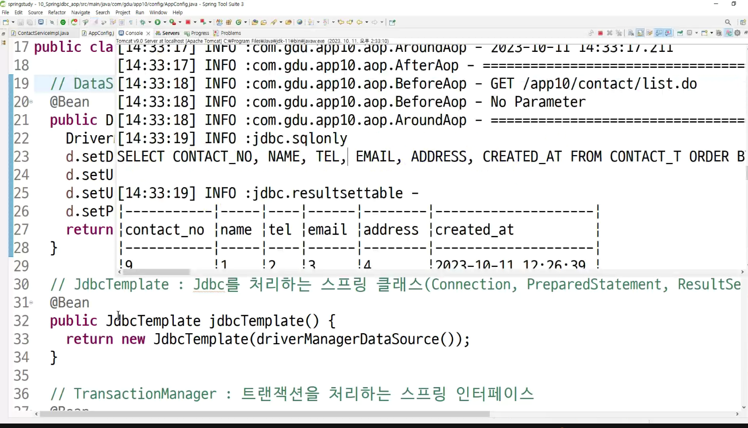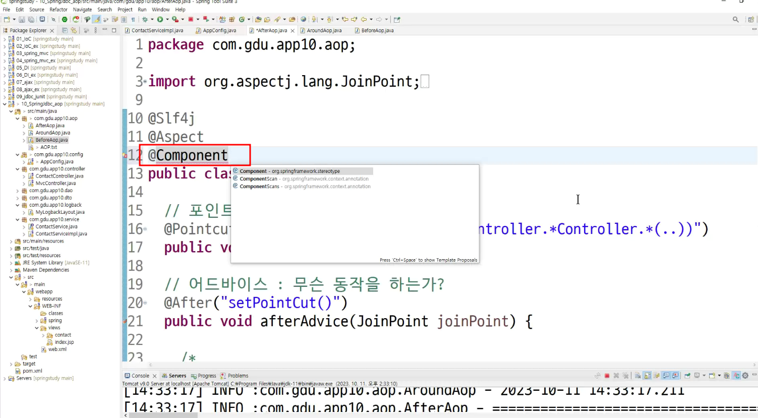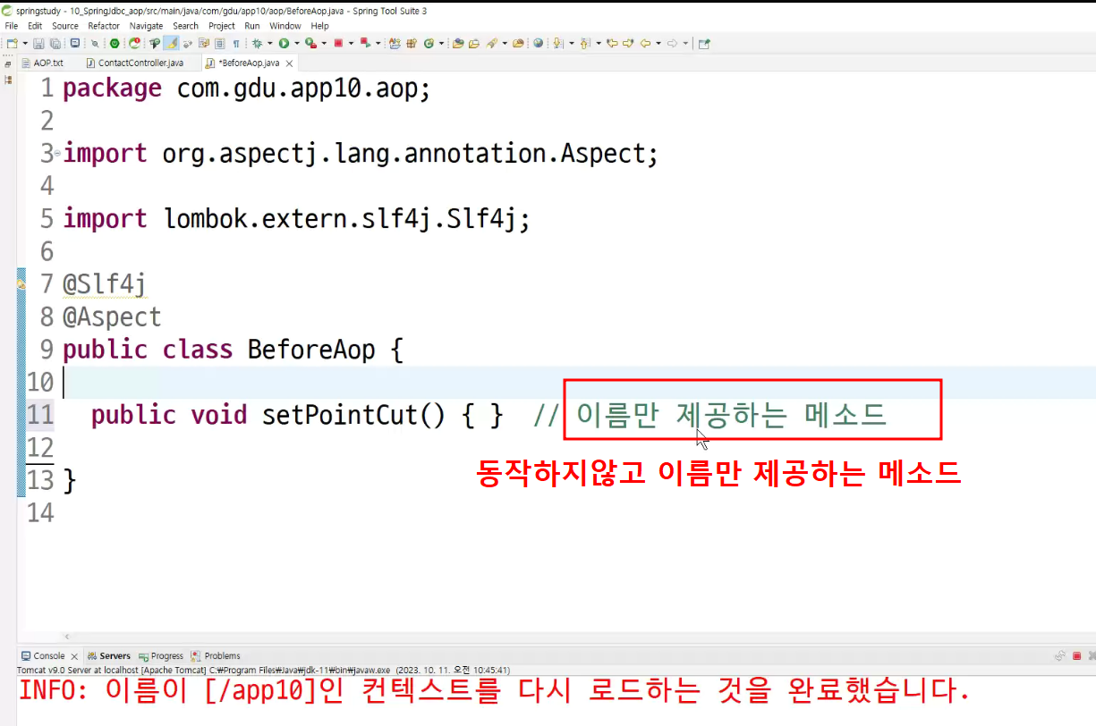 ->왜 configuration에 두는가? aop도 bean으로 만들어두고 처리하는것이라서