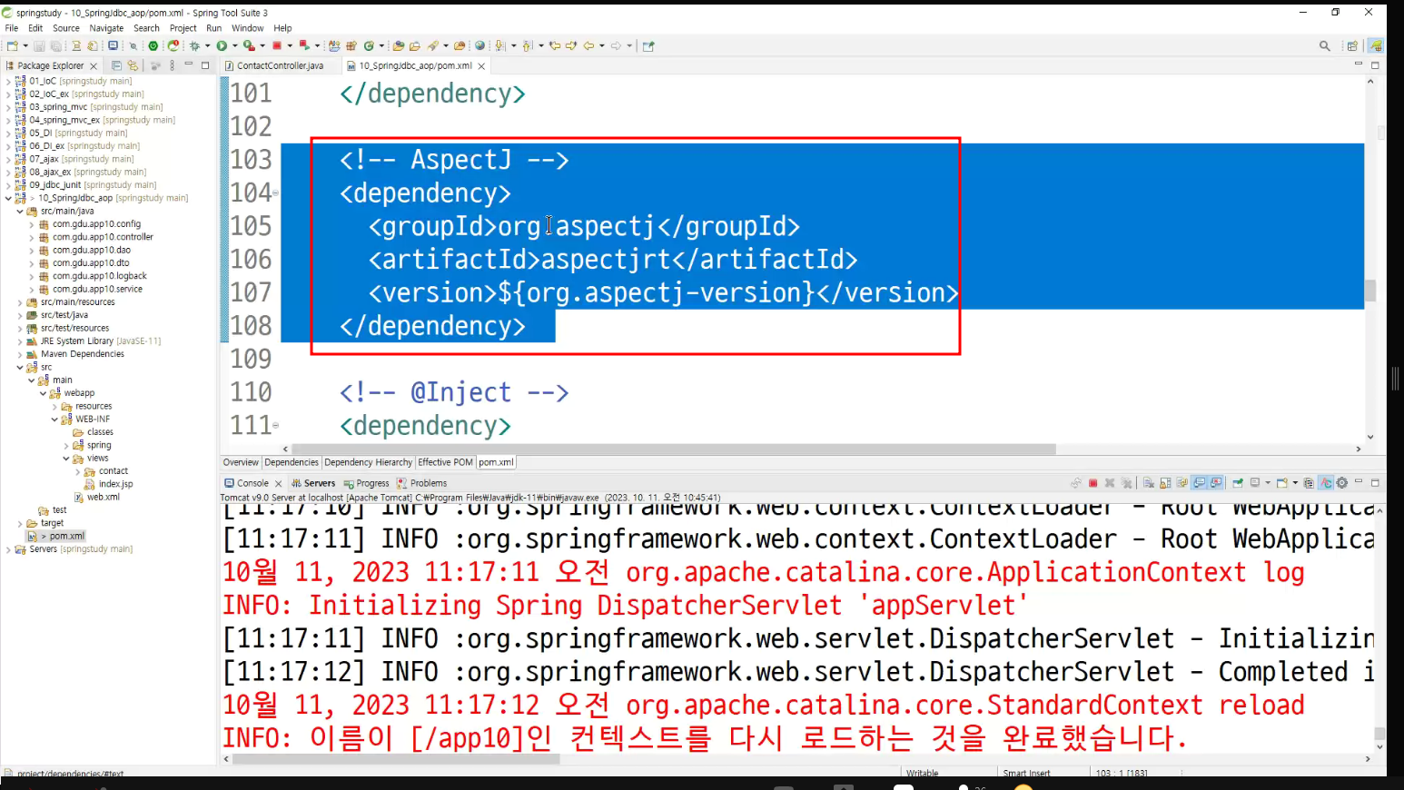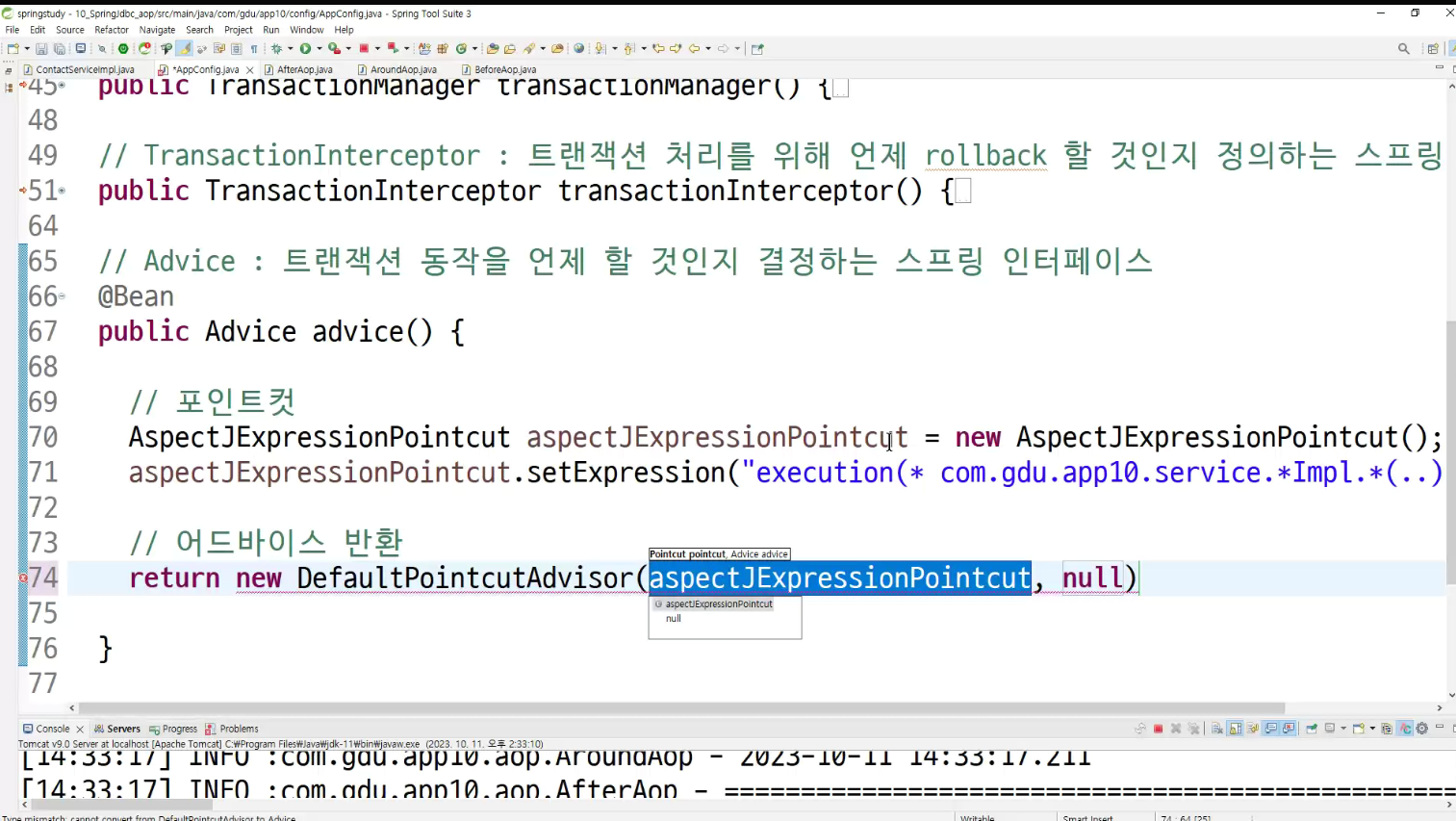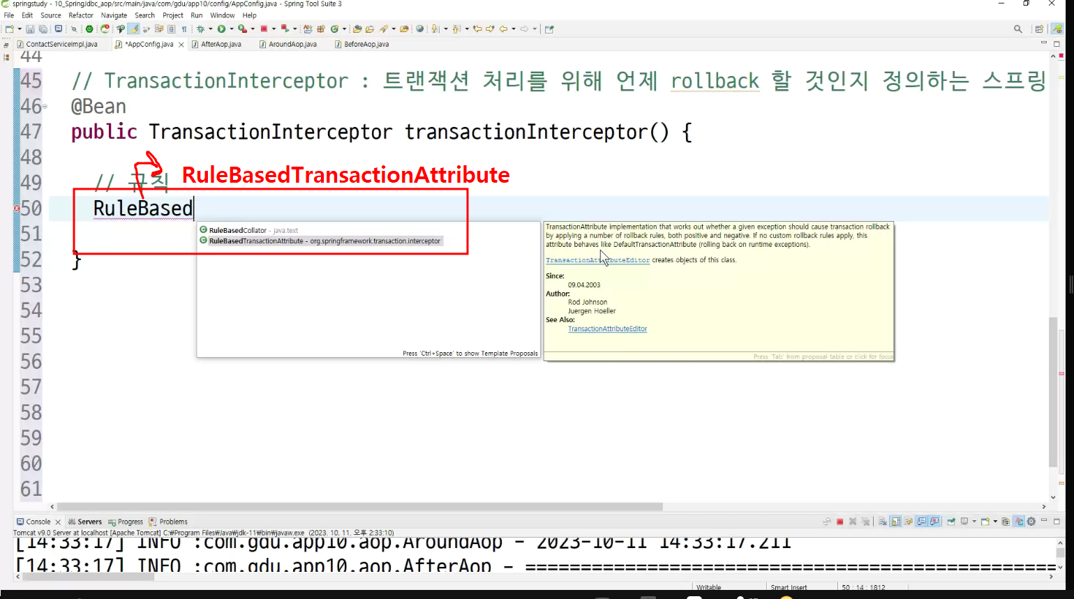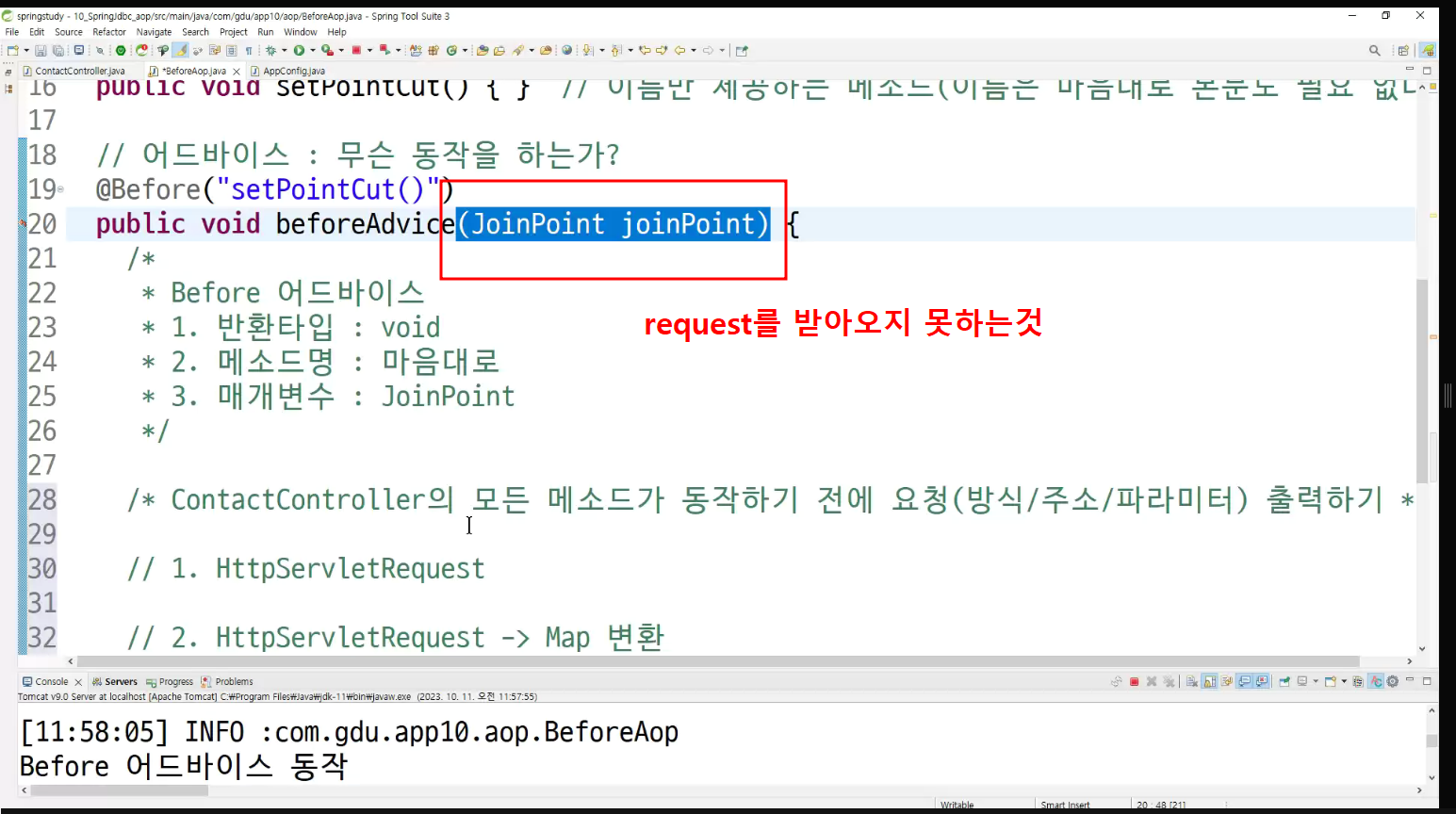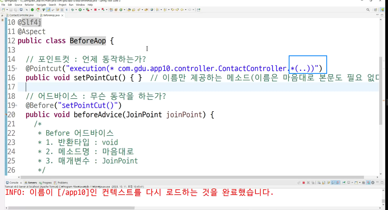 ->왜 configuration에 두는가? aop도 bean으로 만들어두고 처리하는것이라서