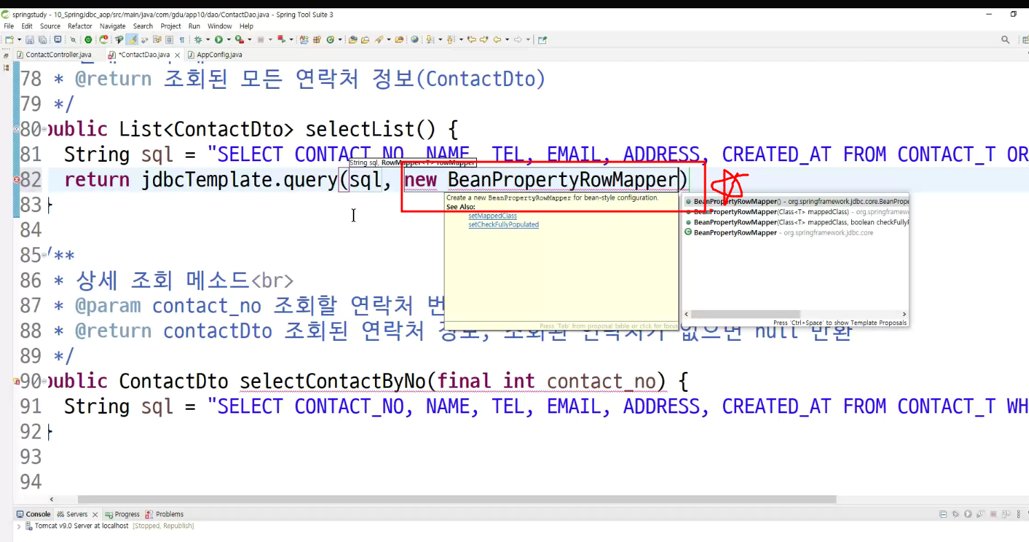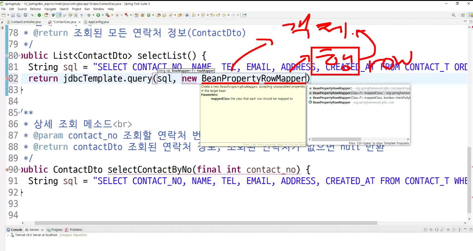 bean property가 객체 속성이니까 어떤 객체에 row 값을 database행을 저장할것인가?/