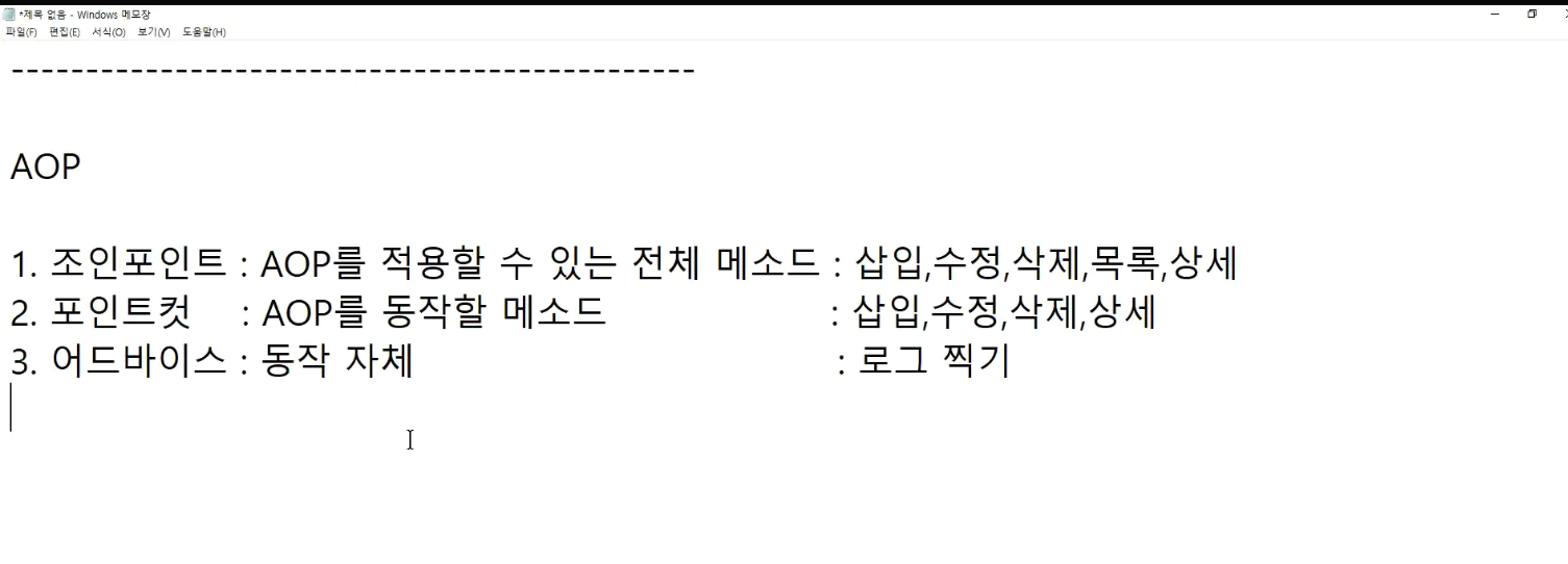 -> 반복적으로 했던 log작업을 AOP작업을 통해서 할 수 있음