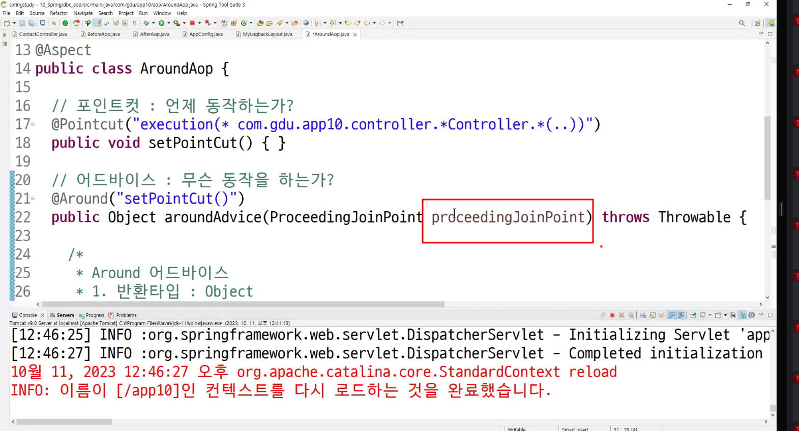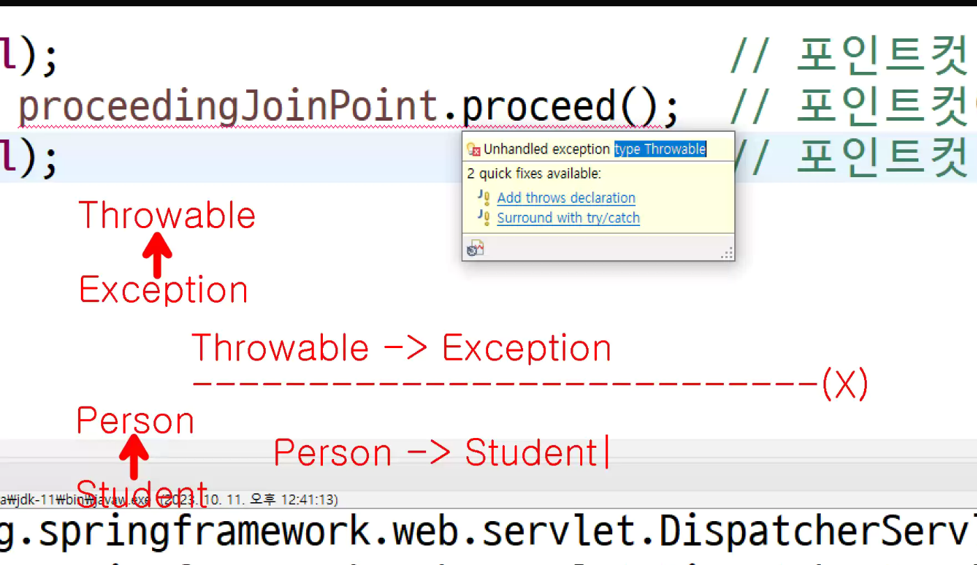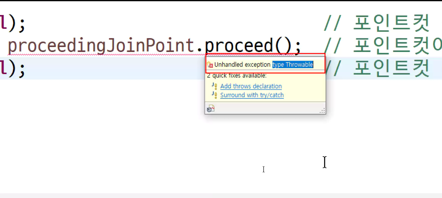 -> object 반환이 필요한 이유는 proceed 진행메소드 이전으로 구분해서 around처리할 수 있게금 해주기 위해서