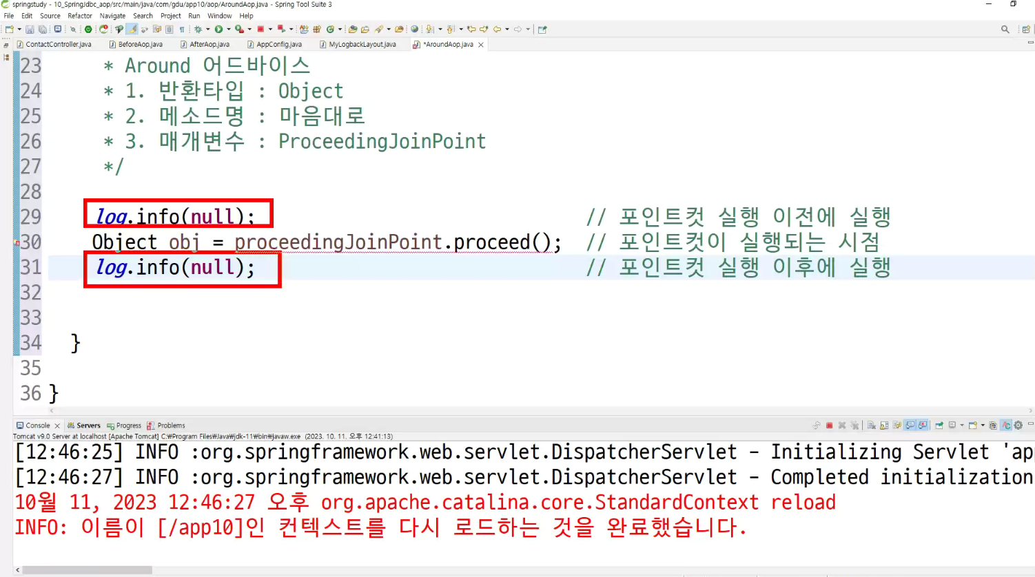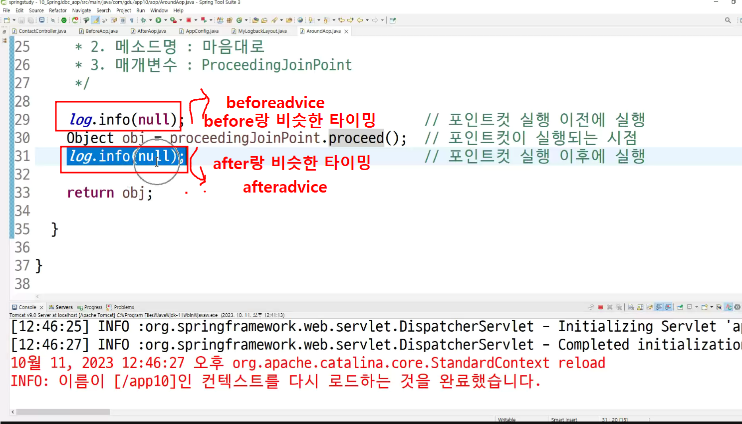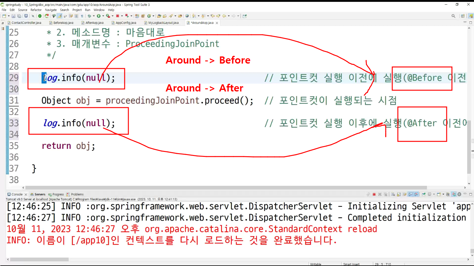 -> around는 앞뒤로 동작할 수 있는 이유가 있음