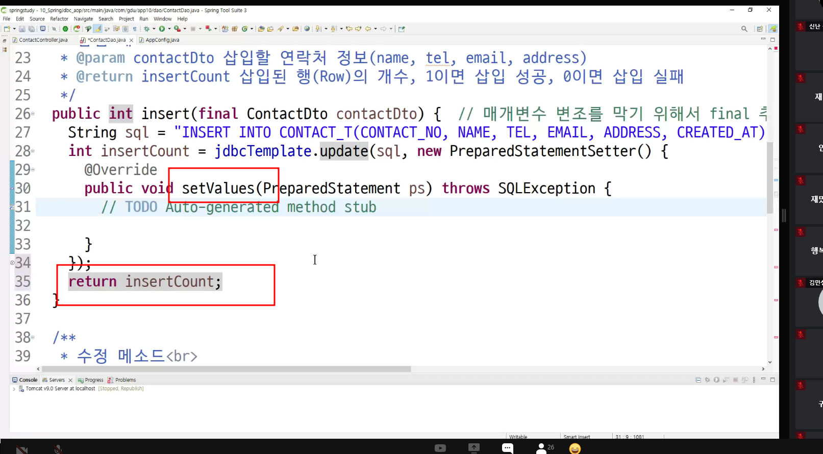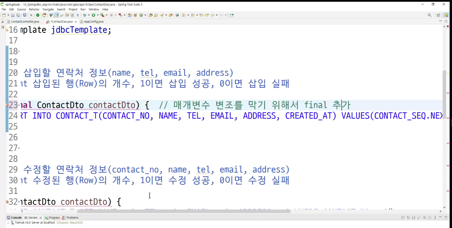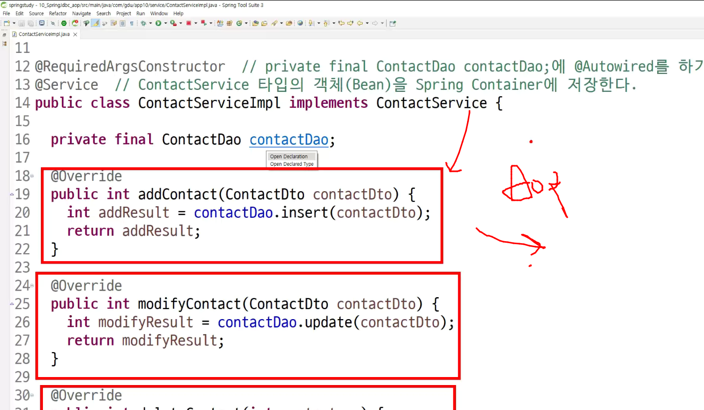 -> 수정,등록,삭제 모두 성공함(어떻게 dao바뀌는지 아는가? 부담가지지 않고 듣기!!)