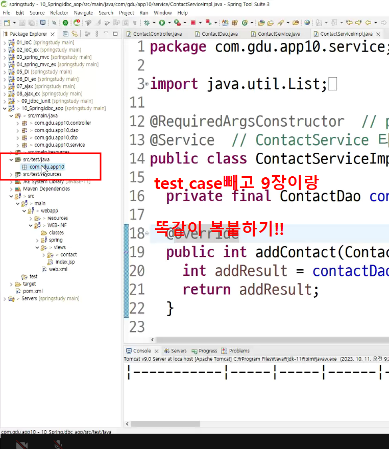 -> insert, update,delete 가 2이상 포함된 service는 transaction 처리를 실제로 해줘야함
