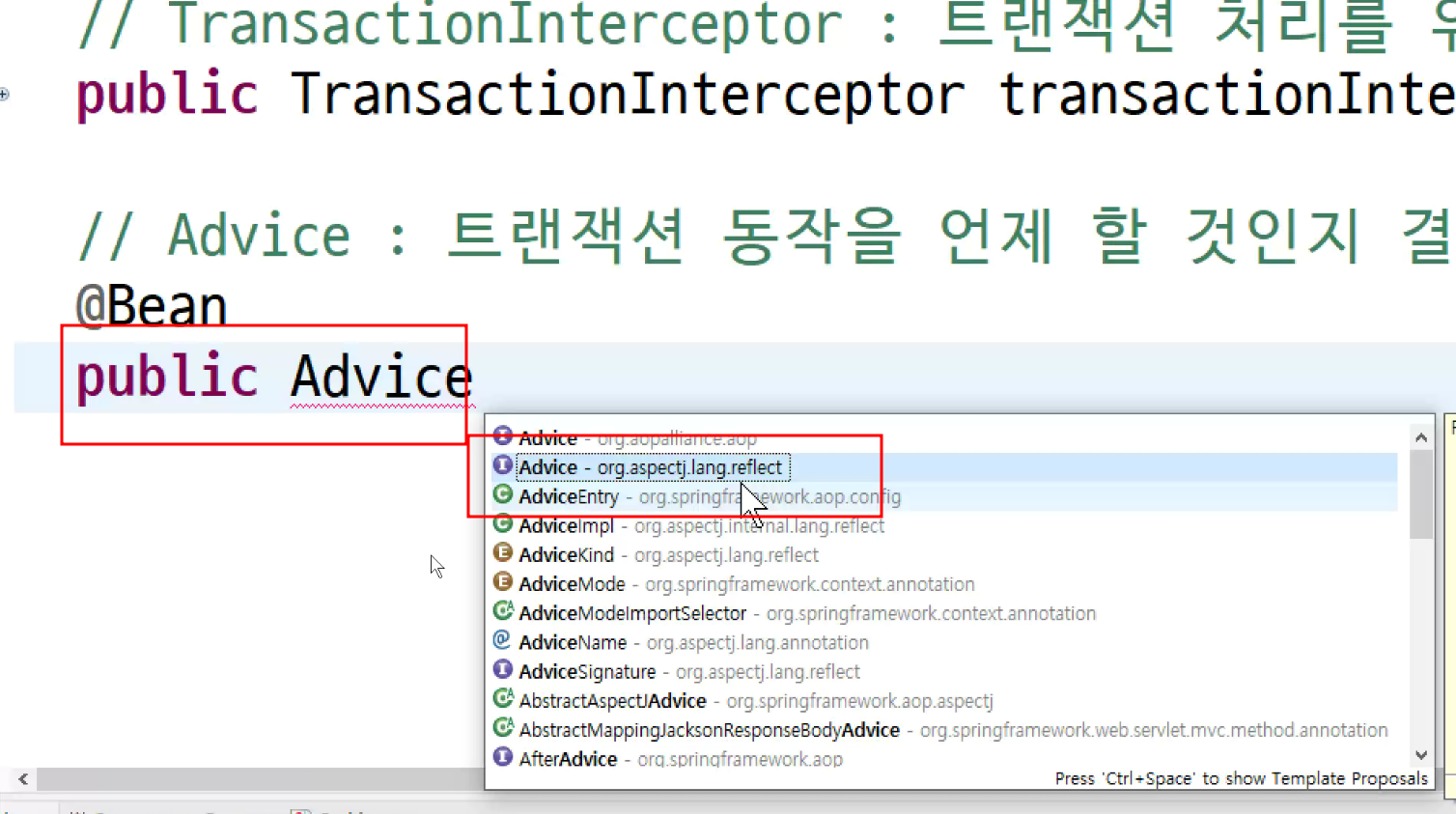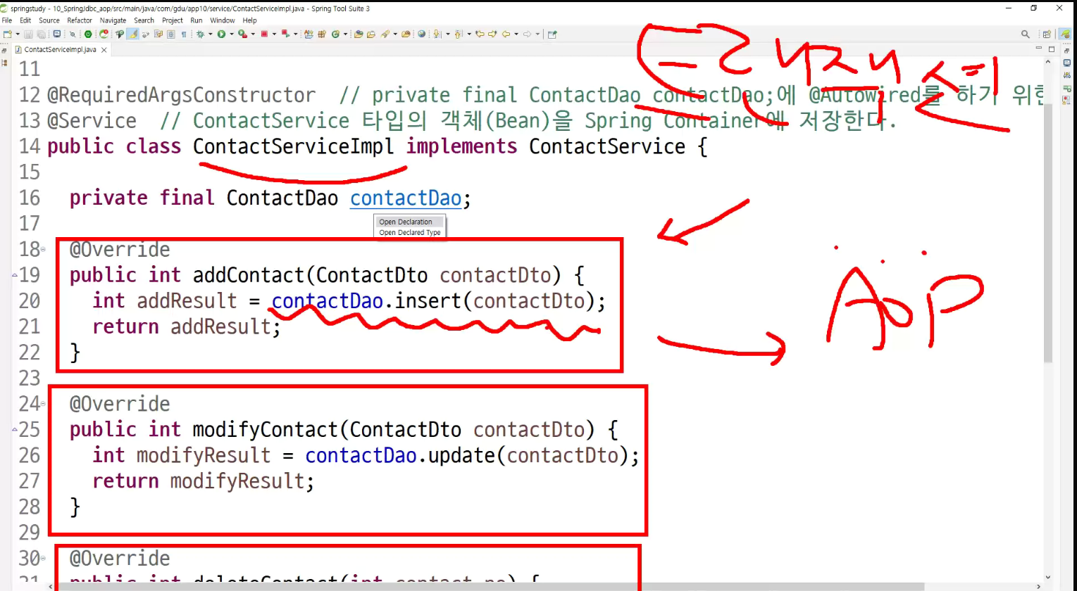 -> 메소드마다 표시를 할건데 그럴꺼면 aop 할필요 x