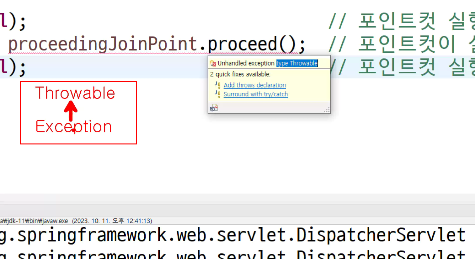 thorwable을 exception에 저장하는거 불가능함