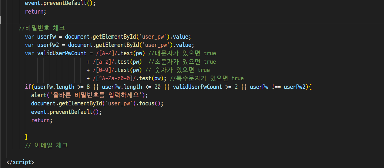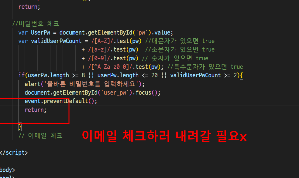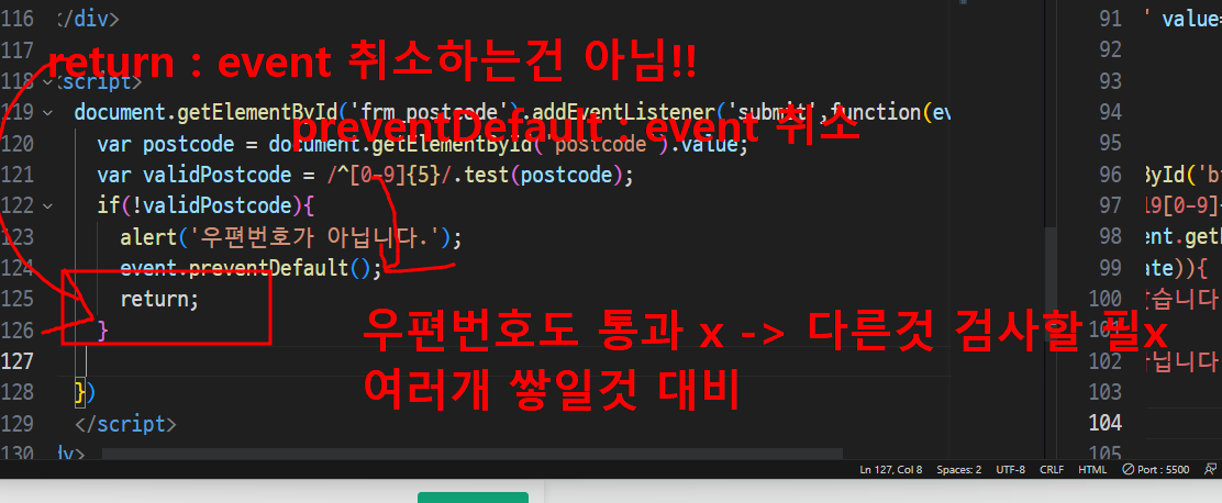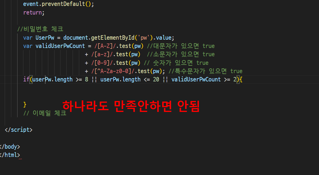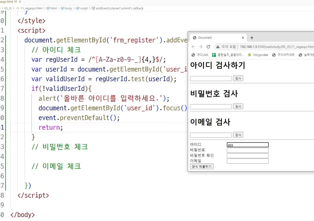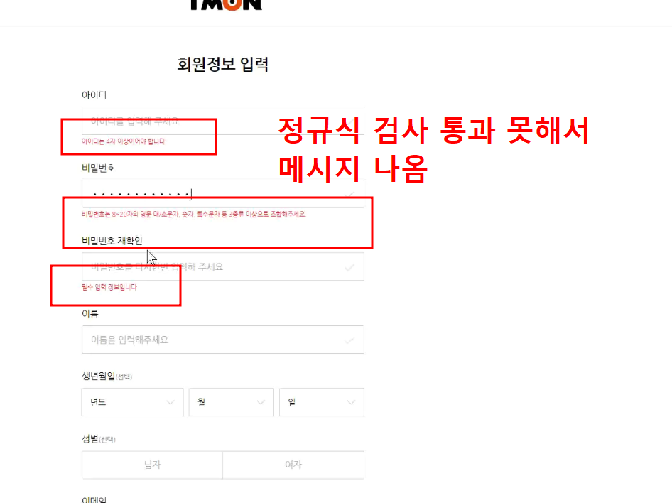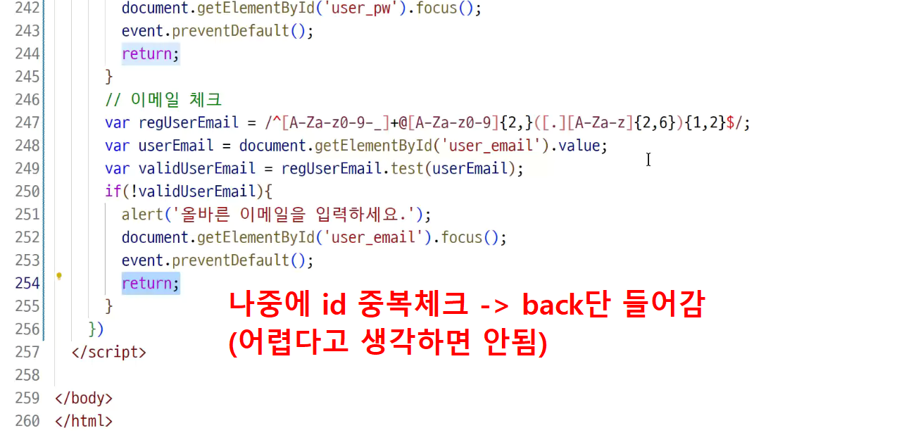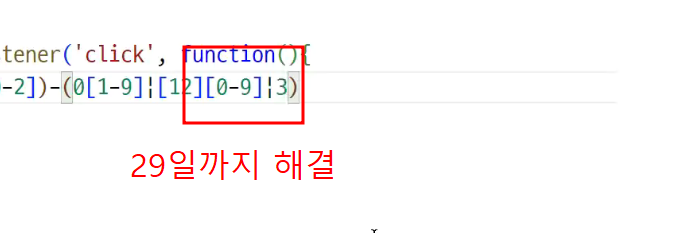 어차피 정규식은 가지고 있고 정규식 통과못헀을때 submit막는 작업이 훨씬 중요함!!