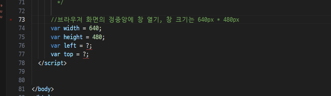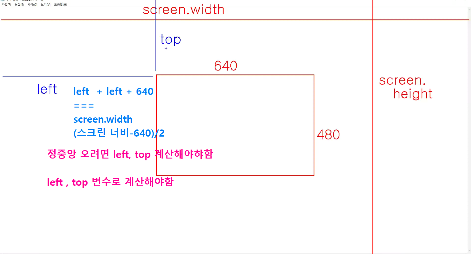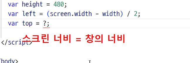 -> 화면 중앙 계산해서 팝업창을 정중앙에 띄오보기!