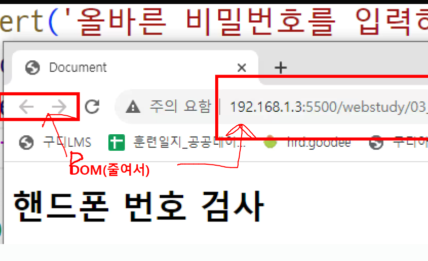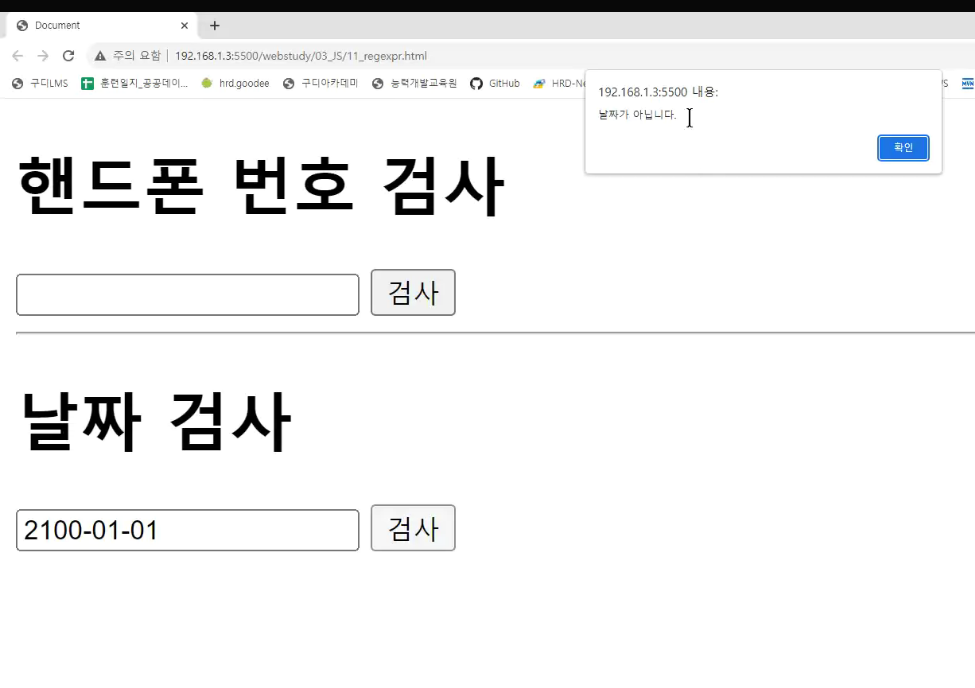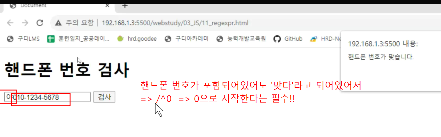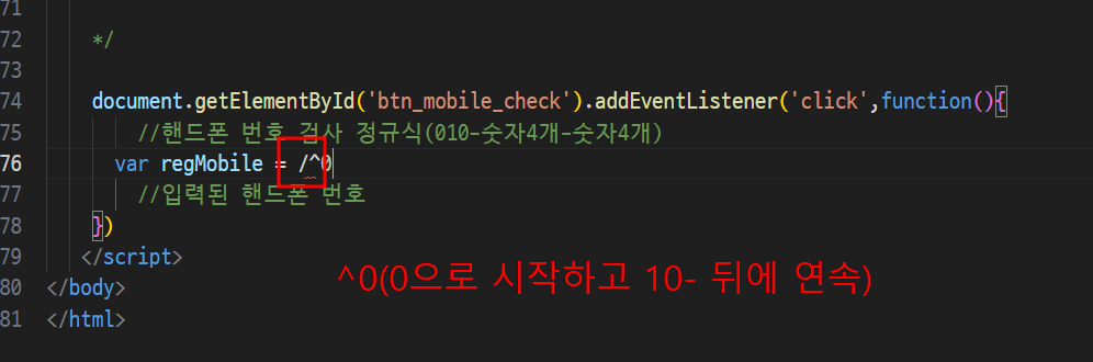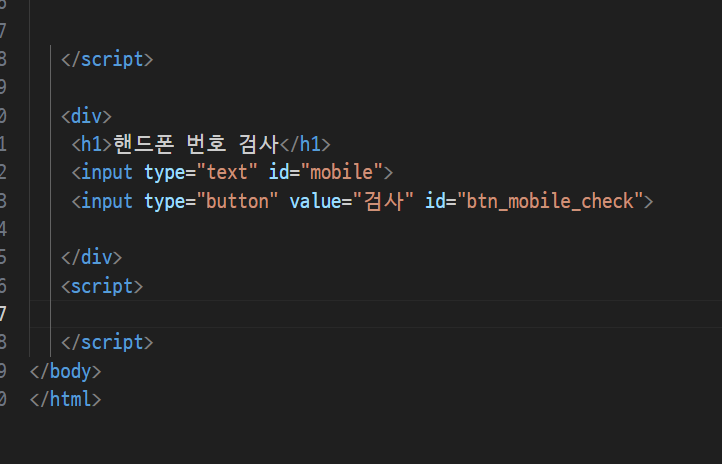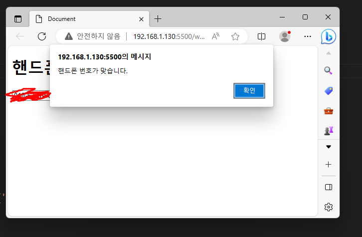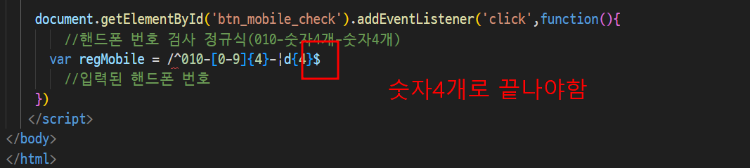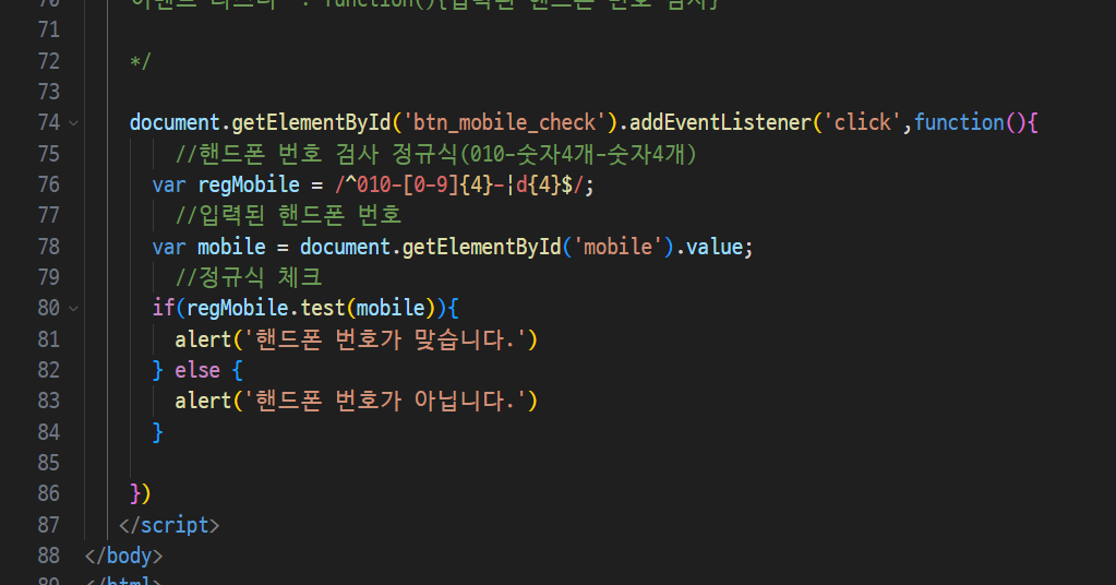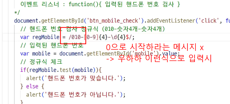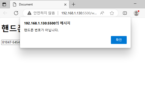 -> 검사버튼을 클릭하면 입력된 모바일 버튼을 검사하기 !
