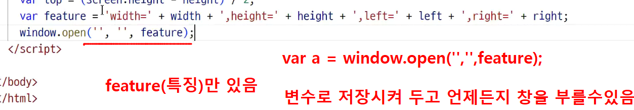 feature : 특징 열어주는 창의 크기, 위치
