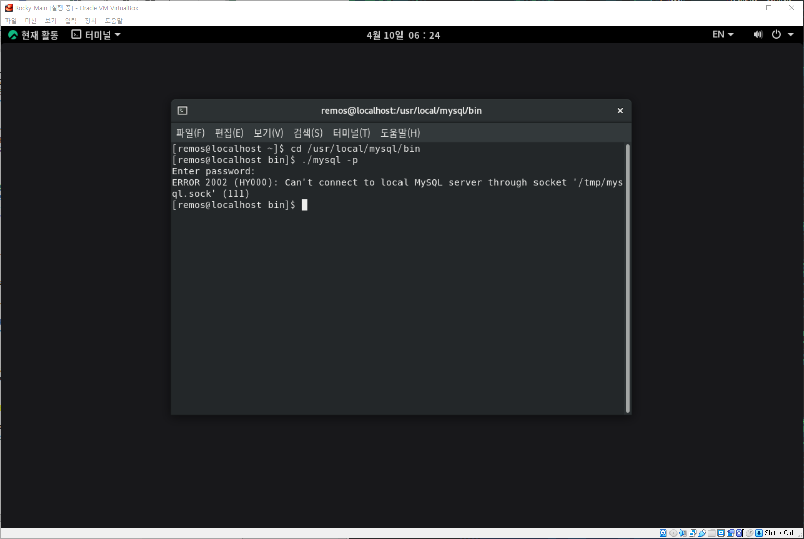 그것도 소켓 파일이 없다는 오류이지요...