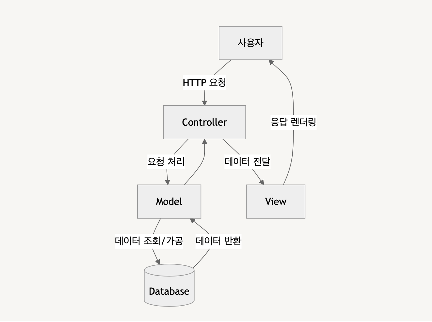 사용자의 요청을 처리하고 비즈니스 로직과 View 간의 흐름을 제어하는 역할.