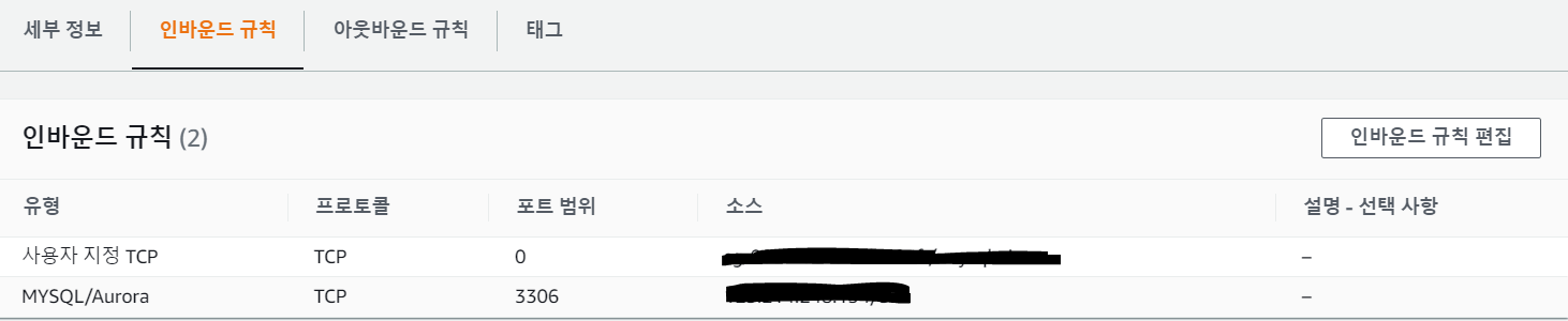 RDS에 접근이 가능하도록 데이터베이스 - 연결&보안 - 보안에서