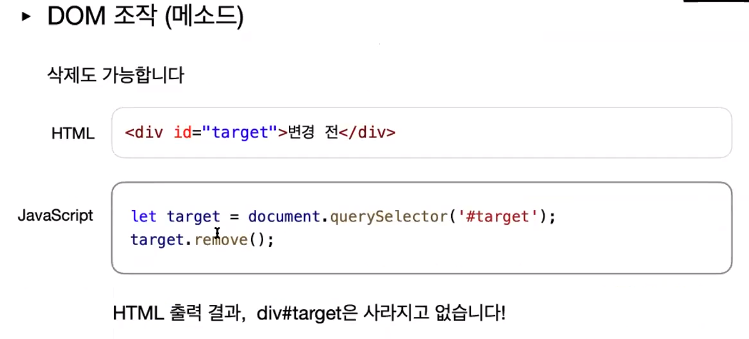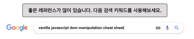 : 모든 자식 엘리먼트를 지우기 (보안 문제, 권장X)document.querySelector('#container').innerHTML = '';