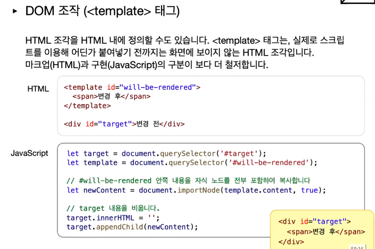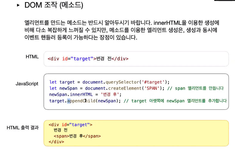: 만든 엘리먼트를 변수에 담아 활용하기document.innerHTML = '<div></div>'