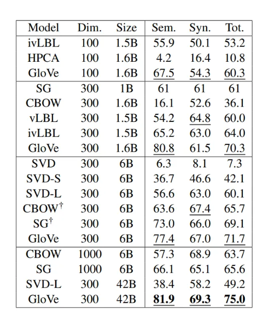 Word Analogy 방식으로 다른 모델들과 성능을 비교한 것