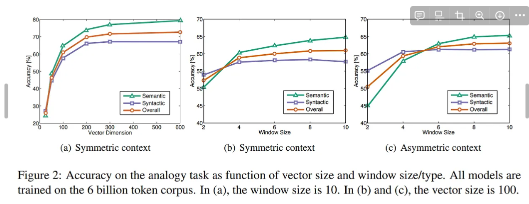 그런데 최근 Mikolov et al.(2013c) 논문에 의하면 단어 벡터 공간의 세부 구조를 평가하기 위해 단순 거리 대신 벡터의 여러 차원 차이를 탐구하는 새로운 평가 방식을 제안했음.
