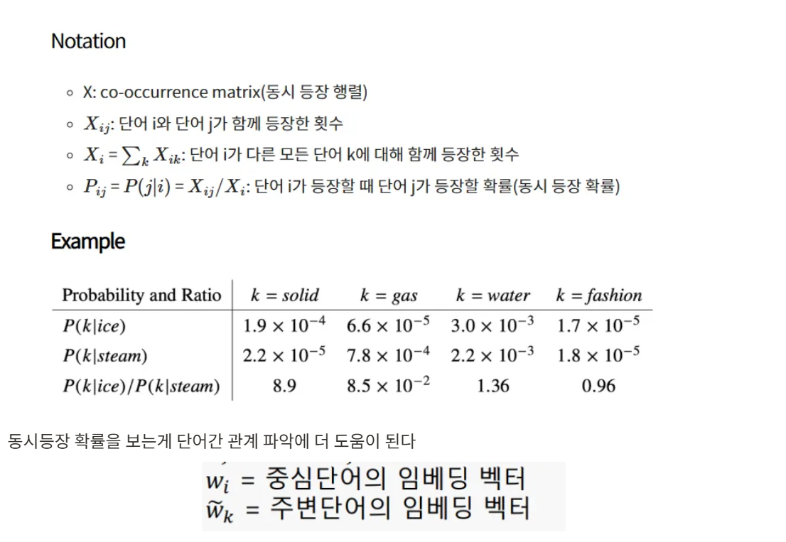 Glove 모델은 word-word co-occurerence 를 통해 어떻게 의미를 만들 것인지에 집중함.