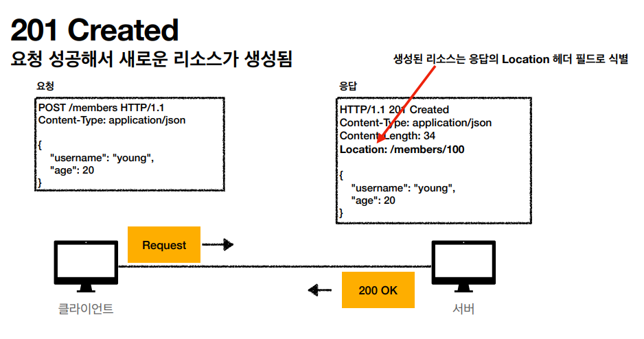 - POST인 경우는 서버에서 자원을 생성 및 URI 관리