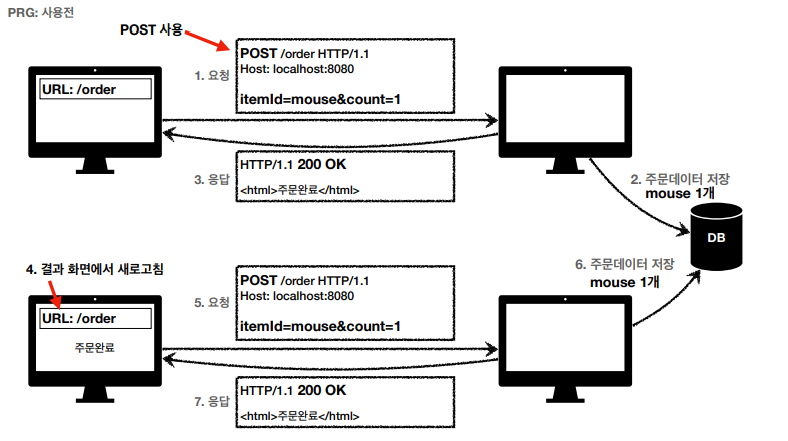 - 중복 주문 대신에 결과 화면만 GET으로 다시 요청