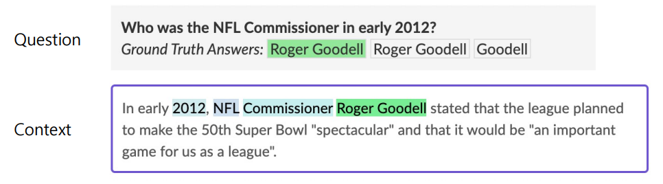 질문(question)의 답변(answer)이 항상 주어진 지문(context)내에 span으로 존재