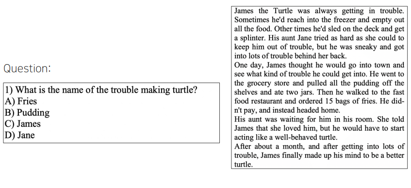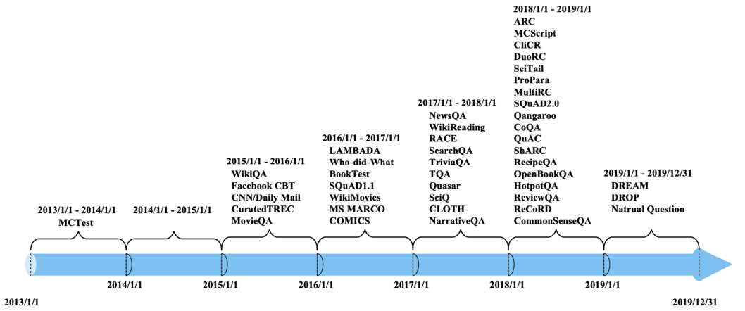3) Multiple-choice Datasets: 질의에 대한 답을 여러 개의 answer candidates 중 하나로 고르는 형태