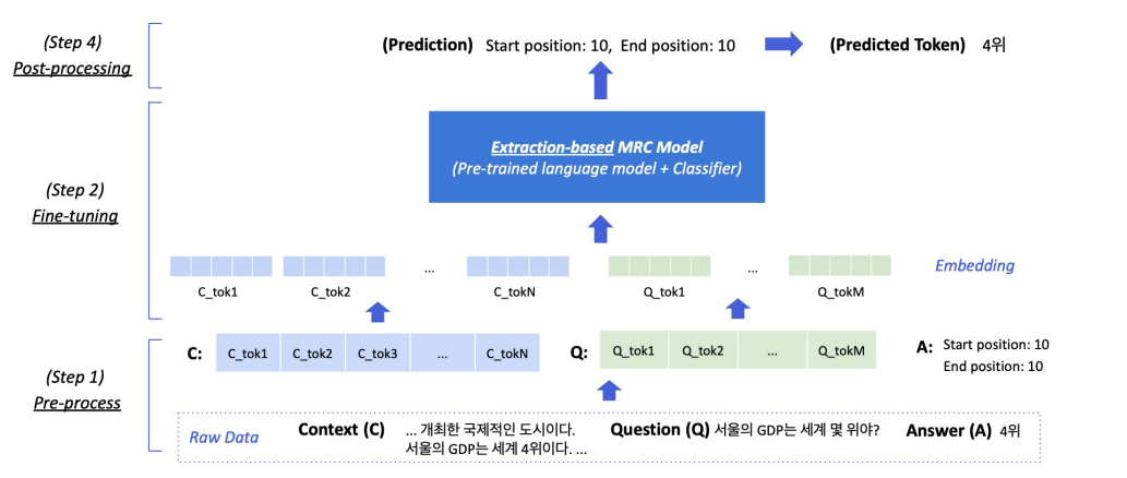 : 주어진 지문(Context)를 이해하고, 주어진 질의 (Query/Question)의 답변을 추론하는 문제