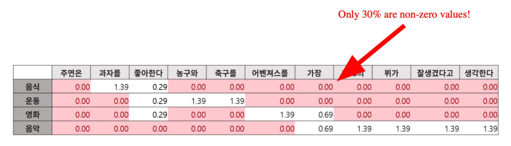 TF-IDF 벡터는 Sparse하다.