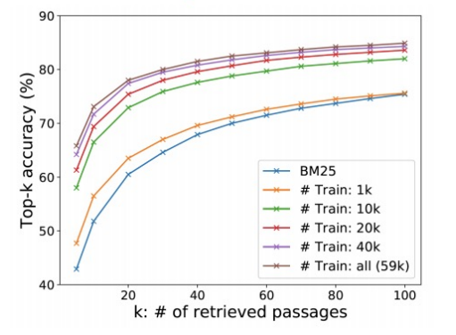 Top-k retrieval accuracy: retrieve 된 passage 중에 답을 포함하는 passage의 비율