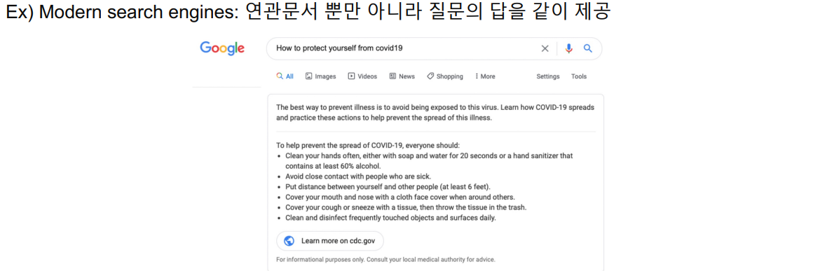 retrieval (IR)에서 더 나아가서, short answer with support 형태가 목표