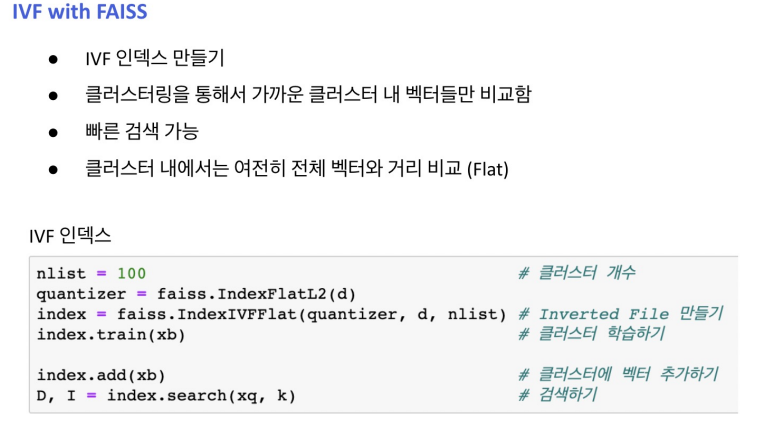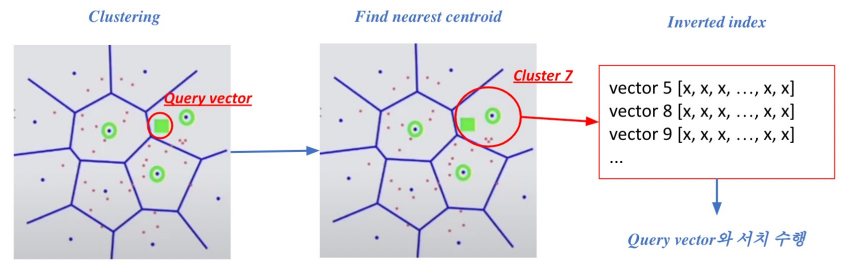 - 주어진 query vector에 대해 근접한 centroid 벡터를 찾음