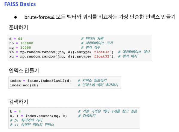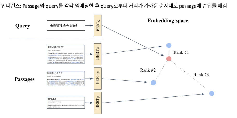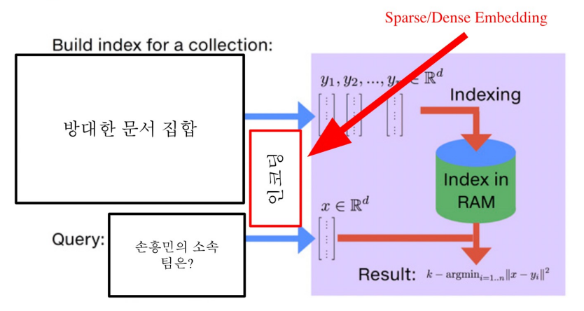 - 저장해둔 모든 Sparse/Dense 임베딩에 대해 일일이 내적값을 계산하여 가장 값이 큰 passage를 추출