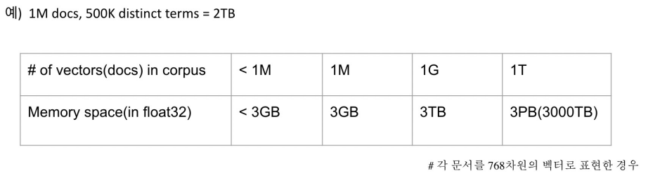 => 따라서 더이상 모든 문서 임베딩을 일일이 보면서 검색할 수 없음