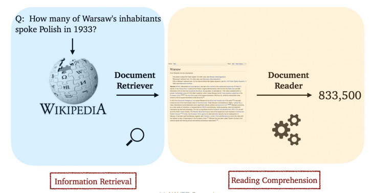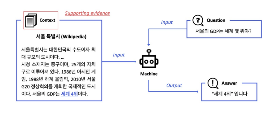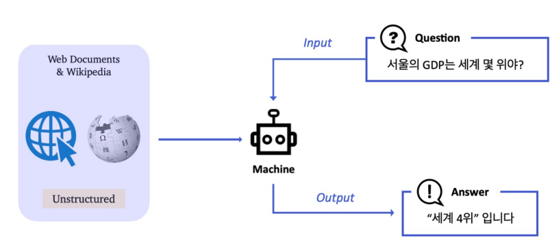 ODQA: 지문이 따로 주어지지 않음. 방대한 World Knowledge에 기반해서 질의응답