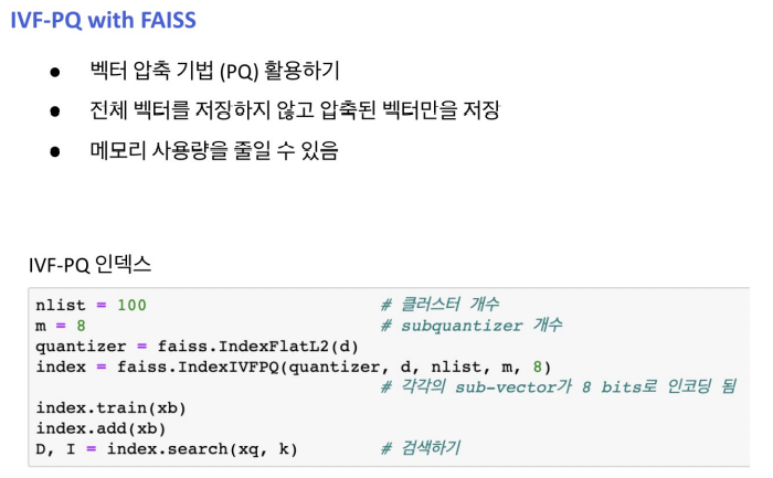 - 찾은 cluster의 inverted list 내 vector들에 대해 서치 수행