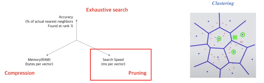 1) Clustering: 전체 vector space를 k개의 cluster로 나눔 (ex. k-means clustering)