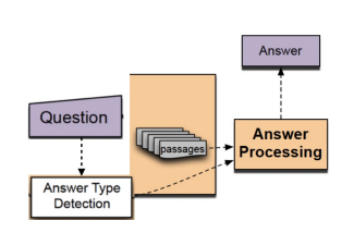 1) Question processing + 2) Passage retrieval + 3) Answer processing1) Question processing