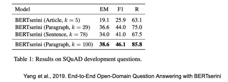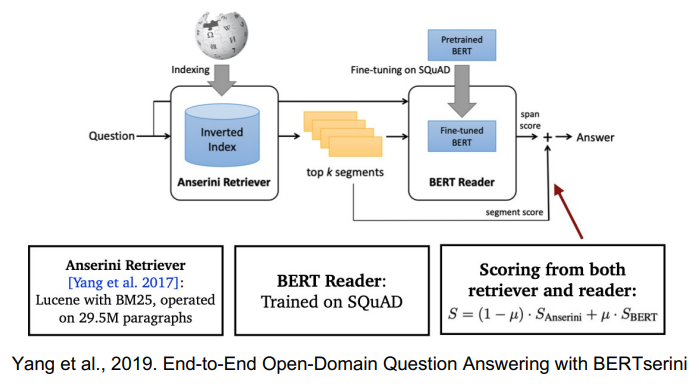 - Reader가 예측한 답변 중 가장 score가 높은 것을 최종 답으로 사용함
