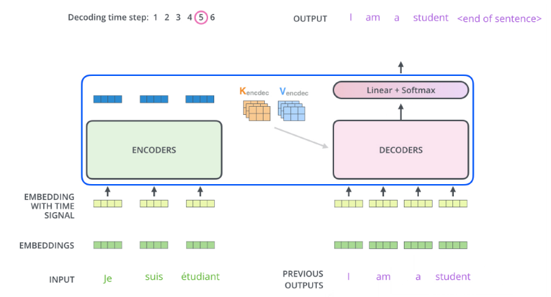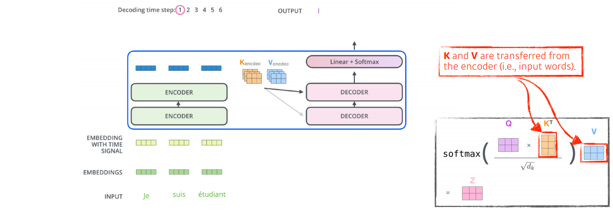 인코더에서 디코더로 key 벡터와 value 벡터를 보내게 된다.